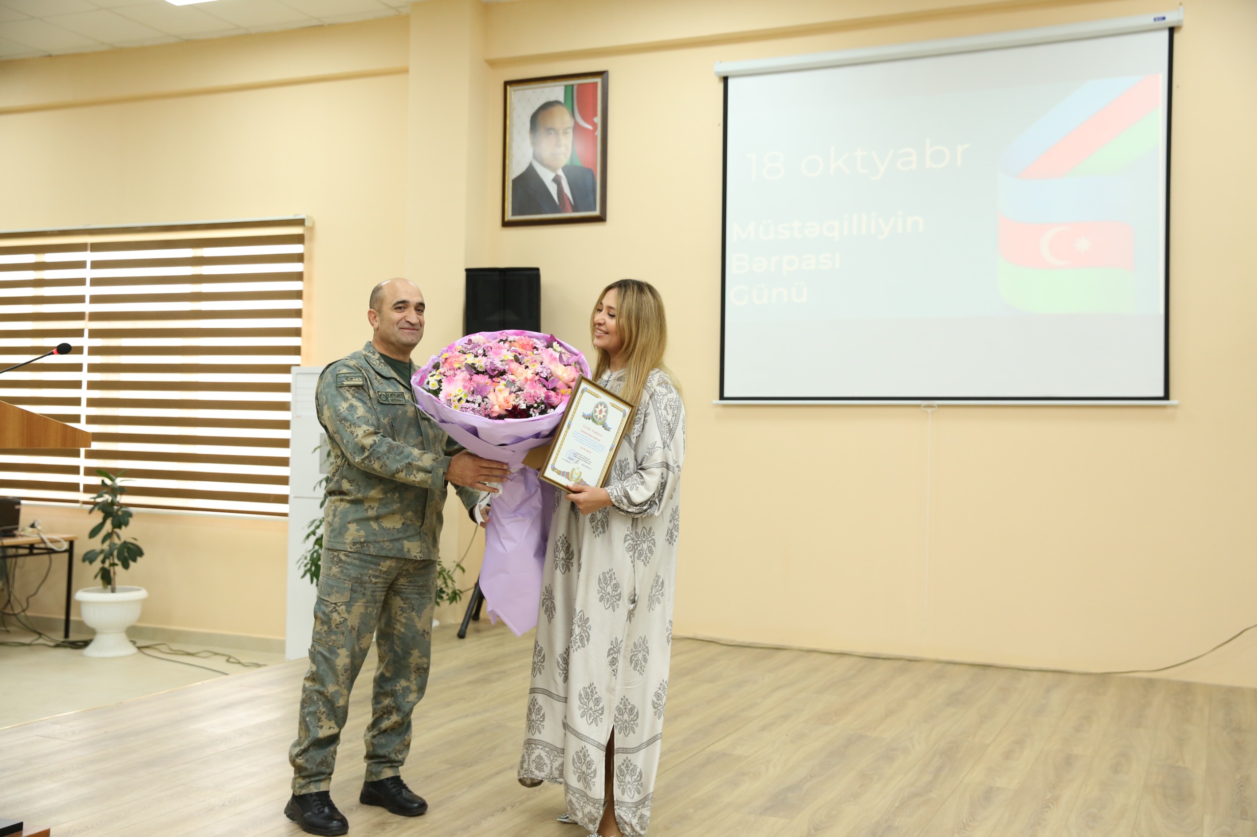 Bakı Şəhər Mədəniyyət Baş İdarəsinin təşkilatçılığı ilə “N” saylı hərbi hissədə 18 oktyabr- Dövlət Müstəqilliyinin Bərpası Gününə həsr olunmuş tədbir keçirilib.