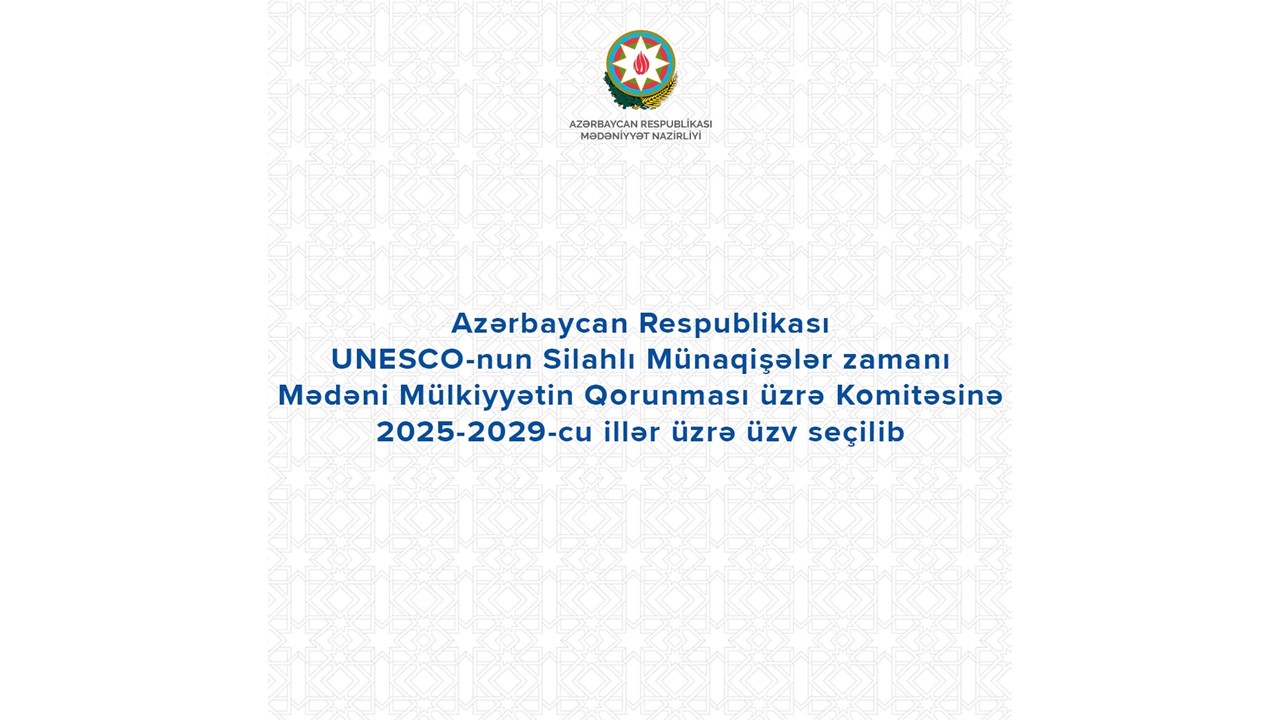 Azərbaycan Respublikası UNESCO-nun Silahlı Münaqişələr zamanı Mədəni Mülkiyyətin Qorunması üzrə Komitəsinə üzv seçilib