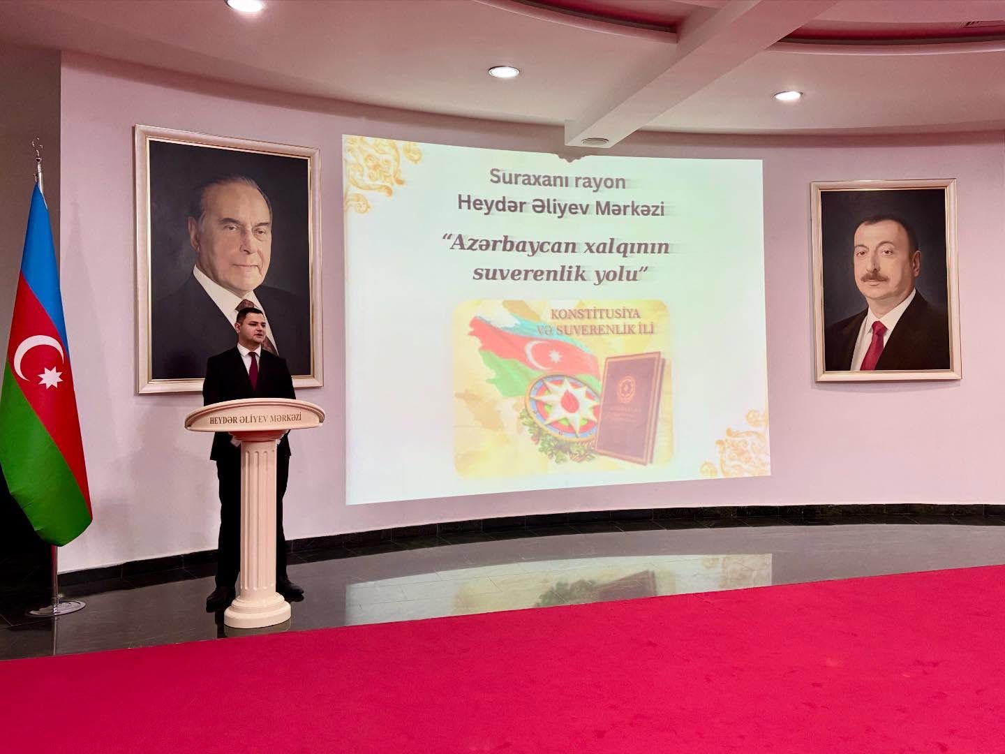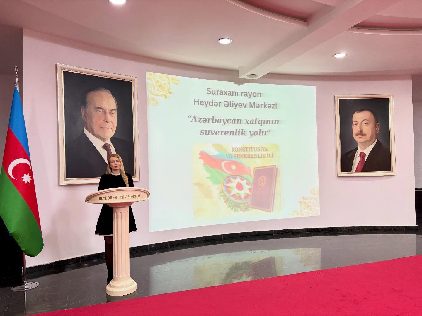 Bakı Şəhər Mədəniyyət Baş İdarəsinin tabeliyində olan Suraxanı rayon Heydər Əliyev Mərkəzində “Azərbaycan xalqının suverenlik yolu” adlı tədbir keçirilib.