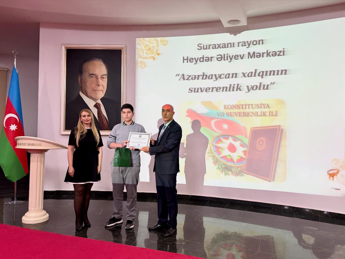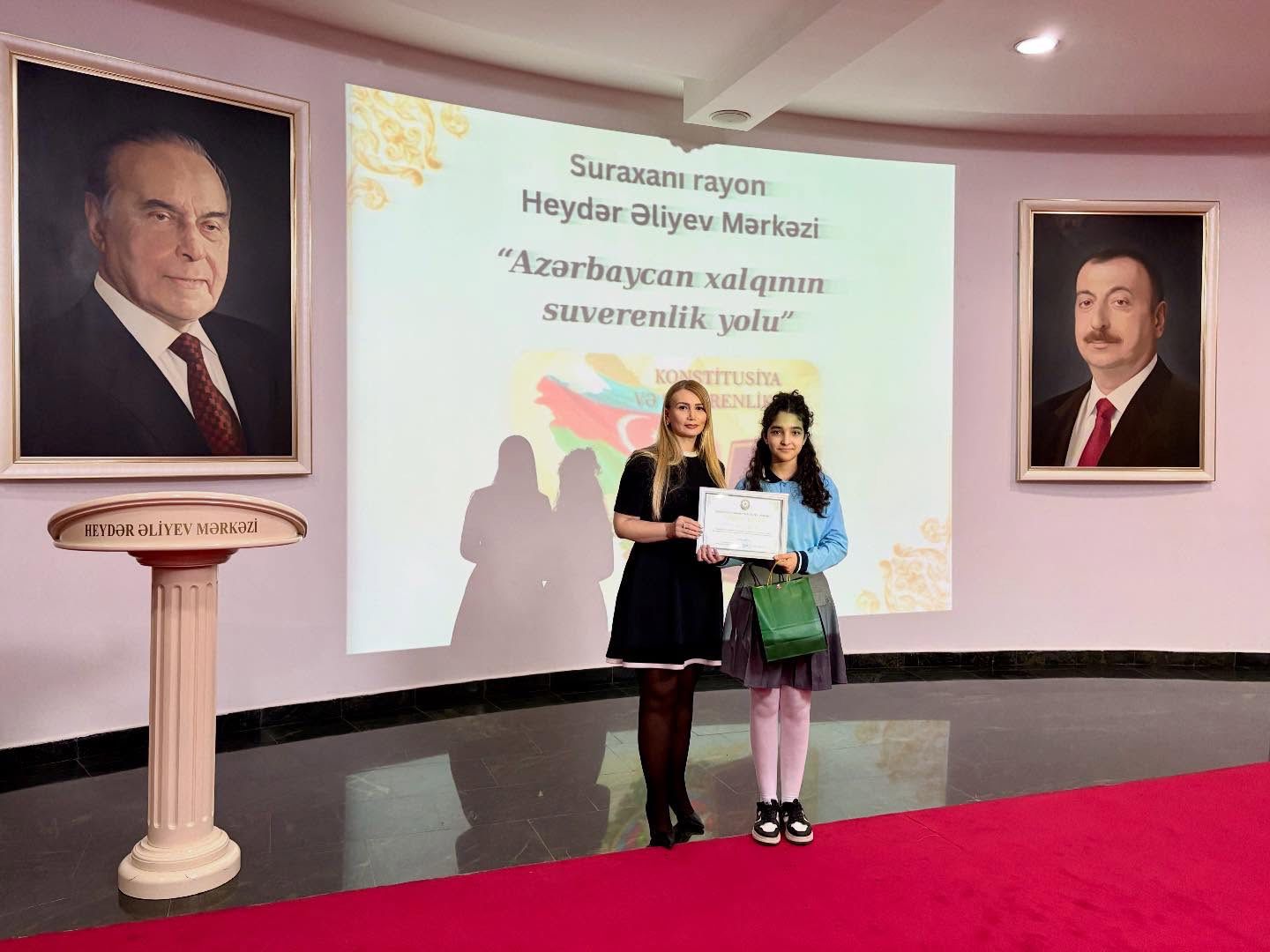 Daha sonra Mərkəzdə keçirilən tədbirlərdə ,“Heydər Əliyev və Azərbaycan” layihəsi üzrə məktəblərdə keçirilən açıq dərslərdə fəal iştiraklarına görə şagirdlər təltif olunublar.