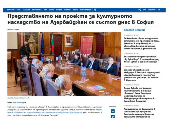 - 09:45 Azərbaycanın mədəni irsi Sofiyada təqdim edilib