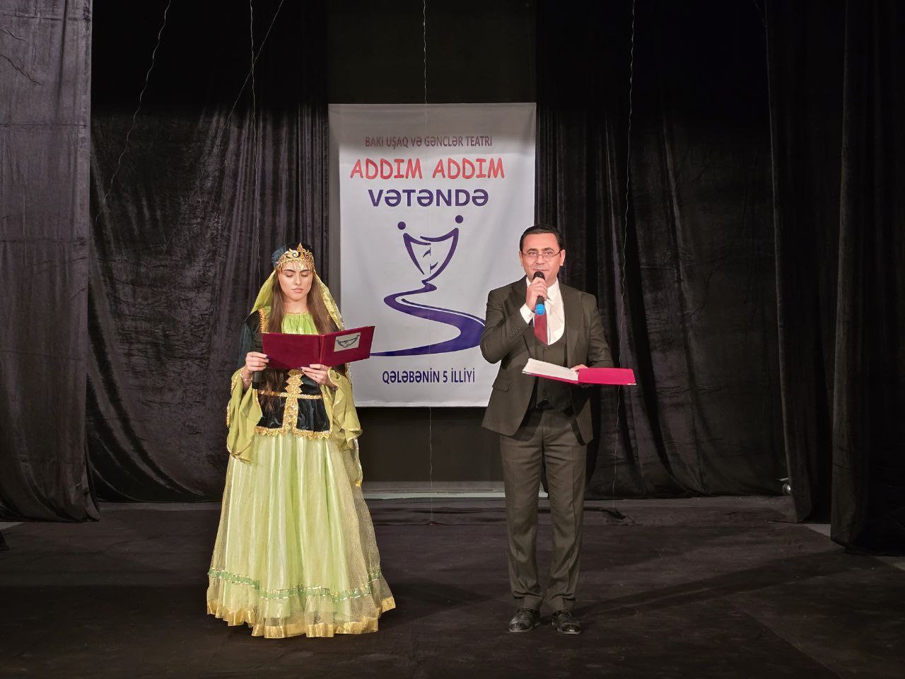Daha sonra Bakı Uşaq və Gənclər Teatrının repertuarında xüsusi yer tutan “Vətən” tamaşası aktyorlar – Niyaz İlyasoğlu, Rauf Hüseynli, Qurban Əhmədovun ifasında nümayiş olunub. Tamaşanın rejissoru Əməkdar artist İntiqam Soltandır.