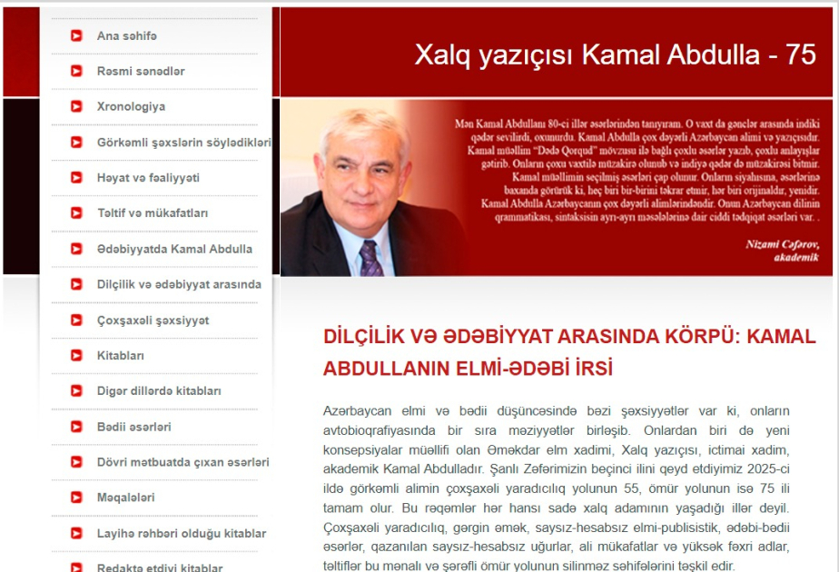- 09:26 Xalq yazıçısı Kamal Abdullanın 75 illik yubileyi qeyd olunub