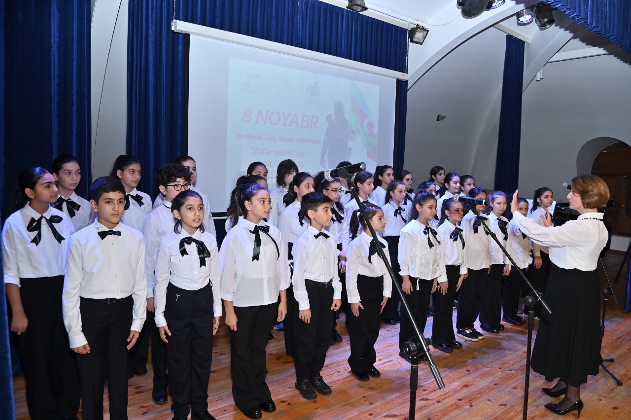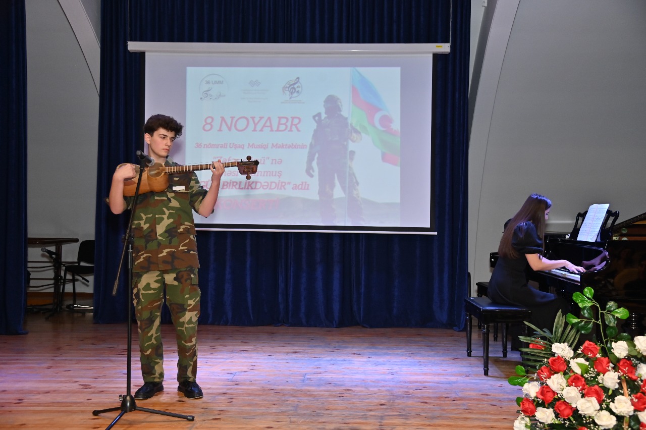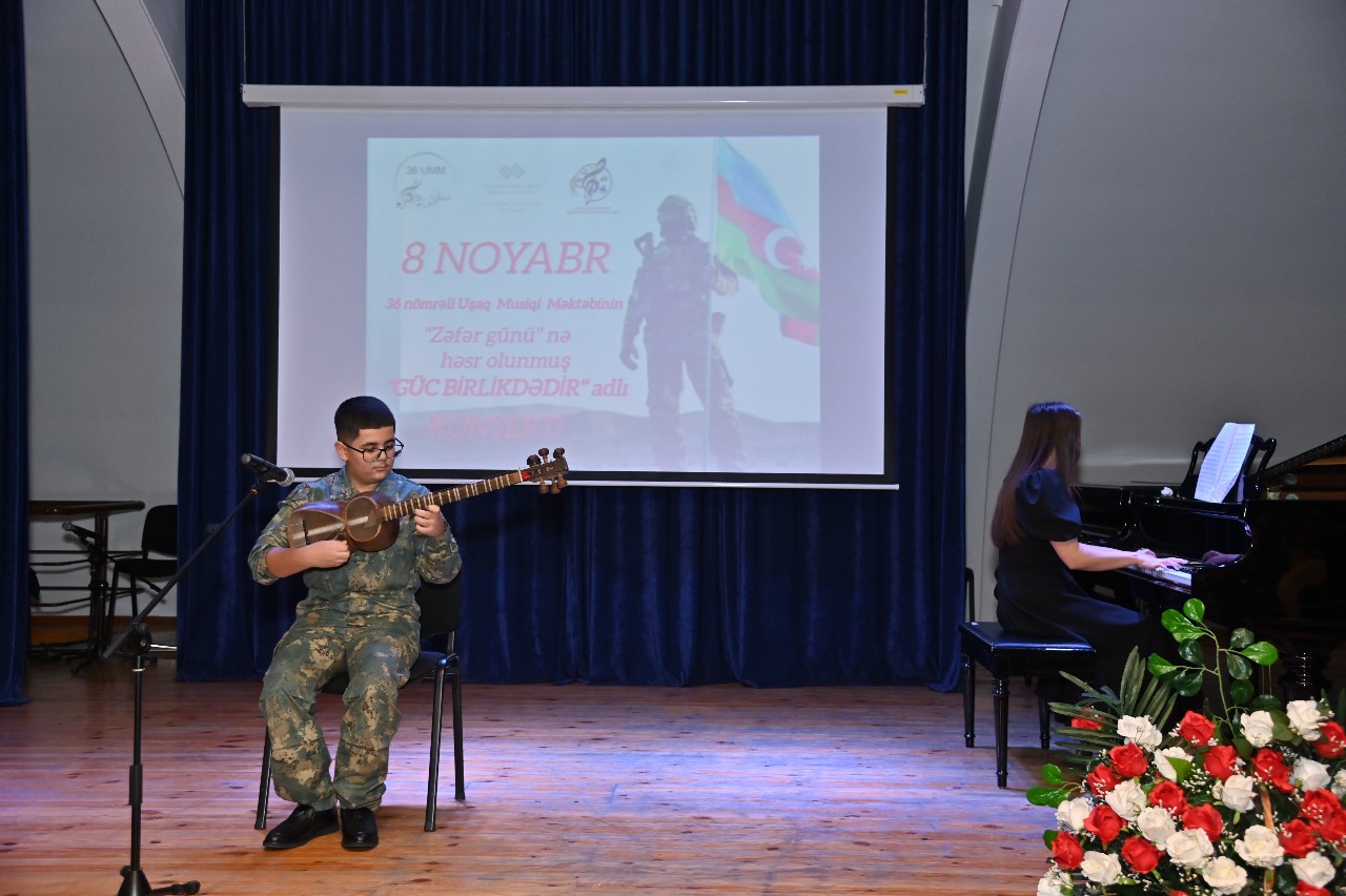 Bakı Şəhər Mədəniyyət Baş İdarəsinin tabeliyində olan 36 nömrəli Uşaq Musiqi Məktəbinin 8 Noyabr - Zəfər Gününə həsr olunmuş "Güc birlikdədir" adlı konserti keçirilib.