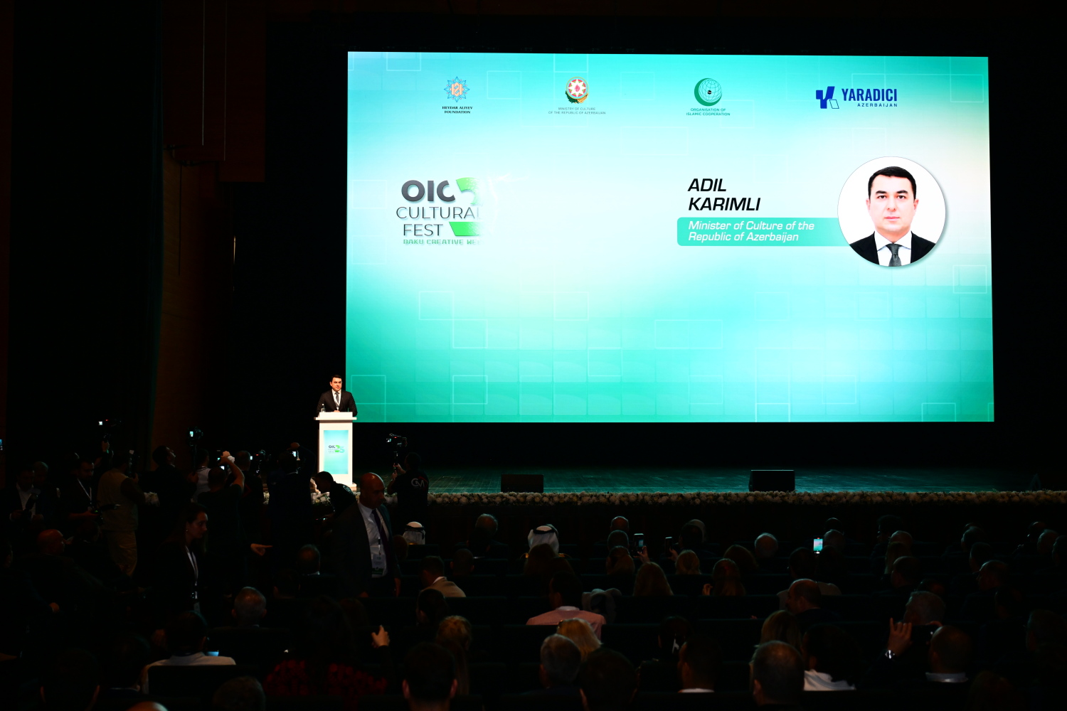 Əvvəlcə Azərbaycanda İslam irsinə dövlət qayğısını və ölkəmizin İƏT-lə, eləcə də müsəlman ölkələri ilə əməkdaşlığını əks etdirən videoçarx nümayiş olunub. Azərbaycan Respublikasının mədəniyyət naziri Adil Kərimli çıxış edərək festival iştirakçılarını salamlayıb, tədbirin ölkəmizin mədəni həyatı üçün əlamətdar hadisə olduğunu bildirib.