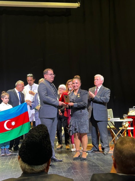 Sonda Türk Dünyası Qadınları Platformunun rəhbəri Günay Əliyeva şanlı Zəfərimizin ildönümü münasibətilə xüsusi hazırlanmış “Xarıbülbül” saatını, Türkiyənin Tək Hədəfim Təhsil Dərnəyinin sədri Cem Yıldırım Türk dünyasına göstərdiyi xüsusi xidmətlərinə görə plaketi “Xarıbülbül” Azərbaycan Mədəniyyət Birliyinin və teatrın rəhbəri Kamalə Kamal Cabbarovaya təqdim ediblər.