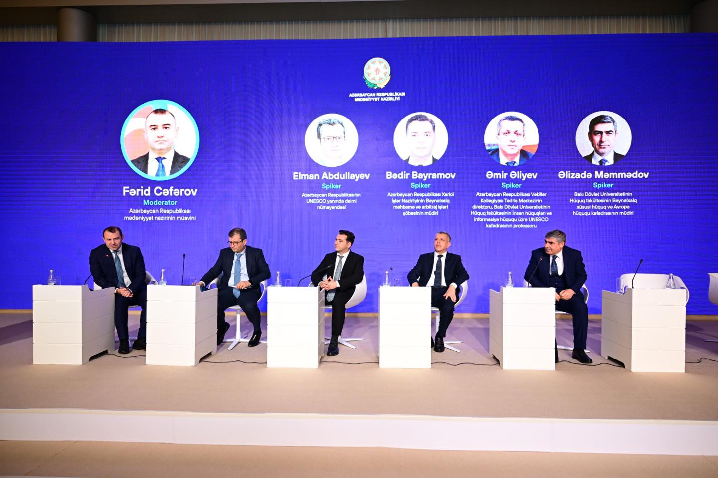 Mədəniyyət nazirinin müavini Fərid Cəfərovun moderator olduğu paneldə "Beynəlxalq hüquq və mədəniyyət hüququ arasında qarşılıqlı əlaqə", "Mədəniyyətin beynəlxalq əməkdaşlıqda yumşaq güc kimi rolu" və "Mədəni irsin qorunması və müasir çağırışlar" mövzuları ətrafında müzakirələr aparılıb.