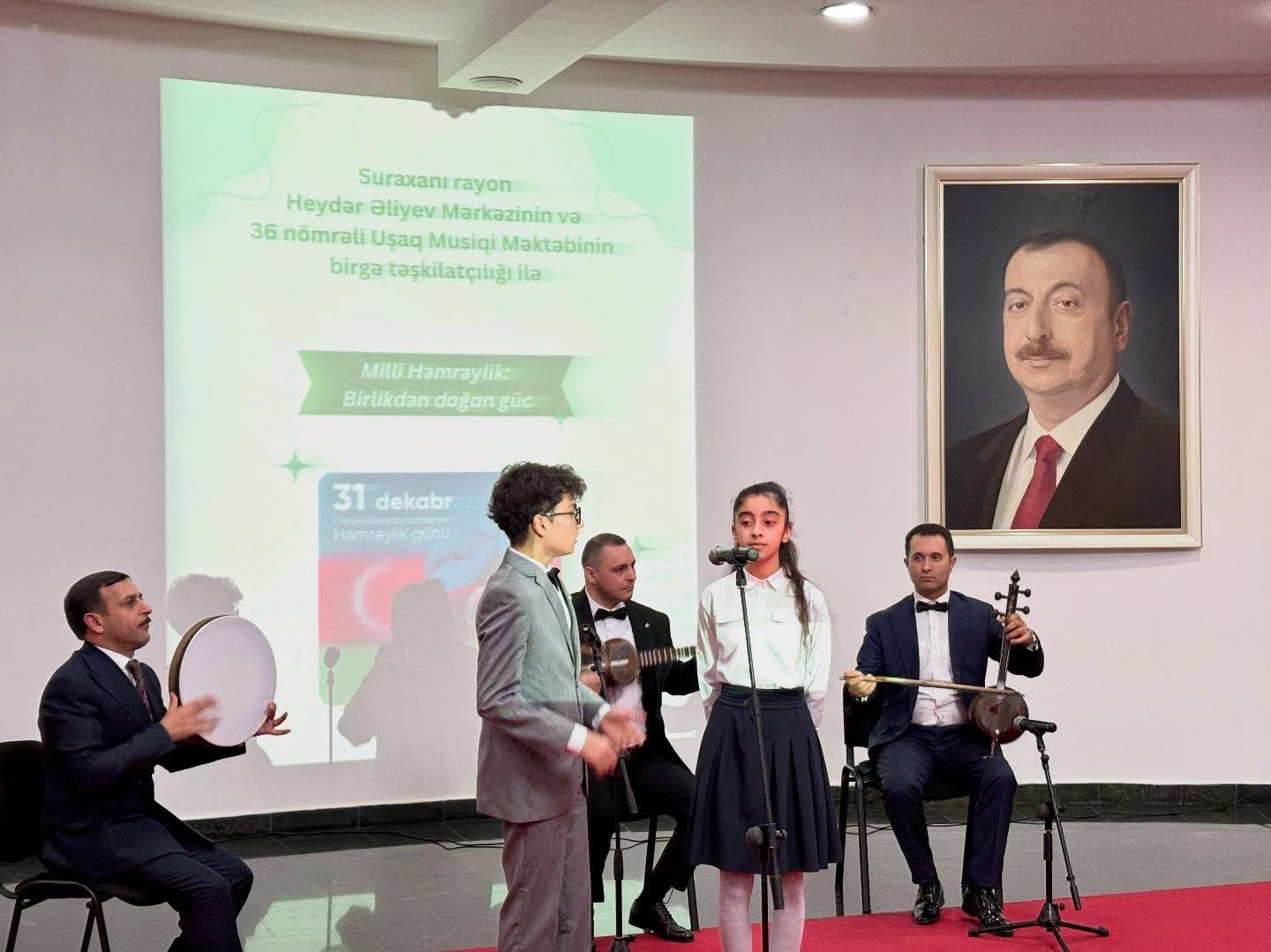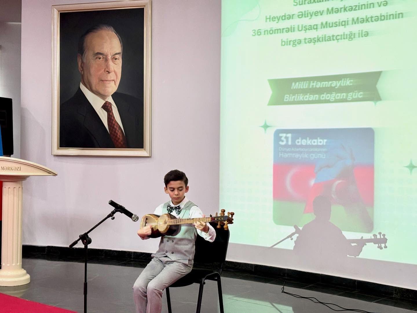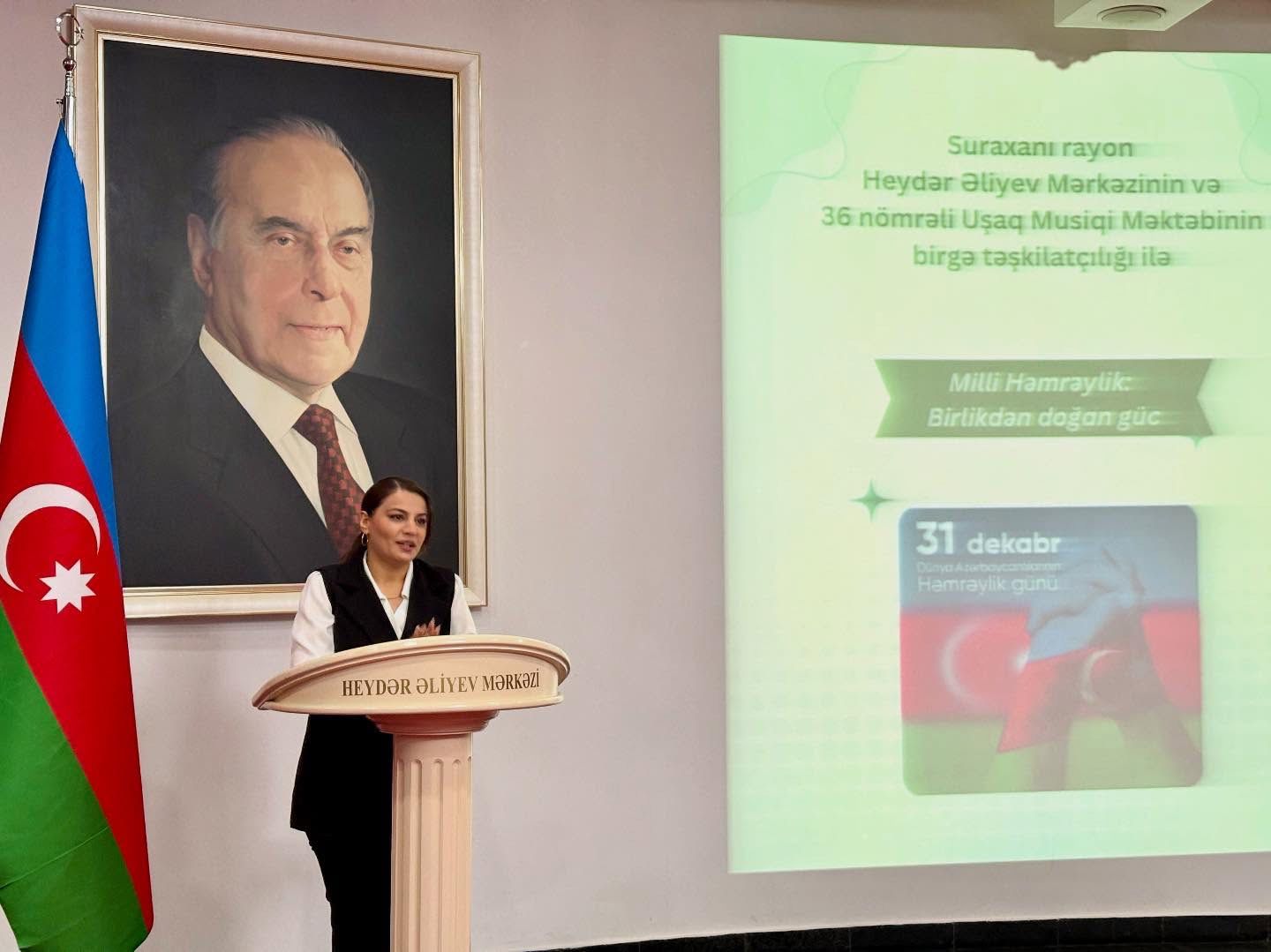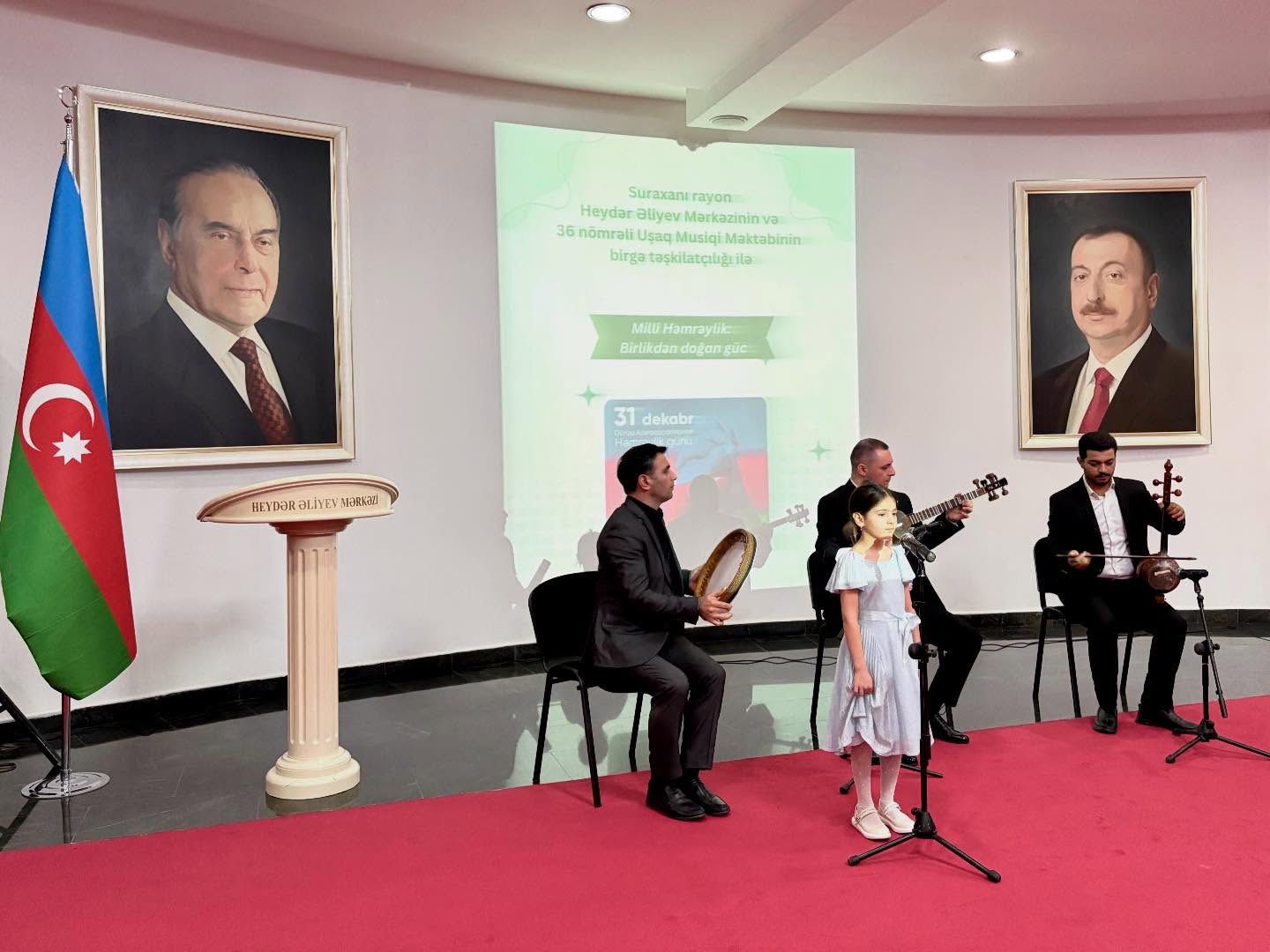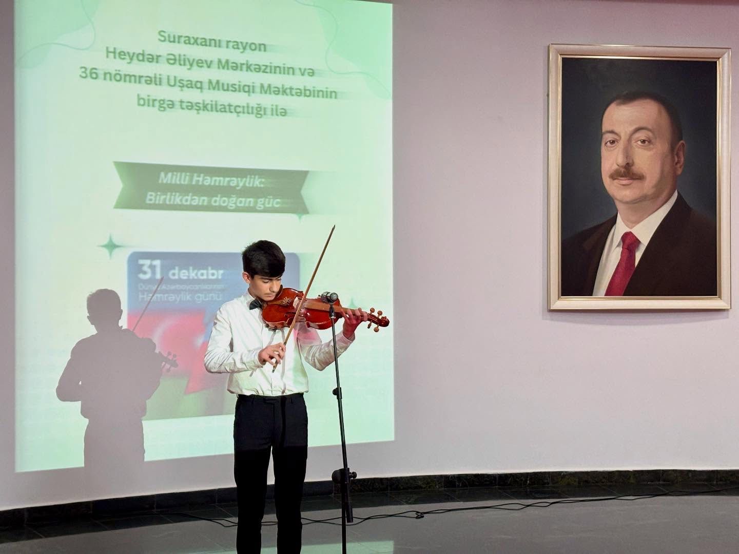 Bakı Şəhər Mədəniyyət Baş İdarəsinin tabeliyində olan Suraxanı rayon Heydər Əliyev Mərkəzinin və 36 nömrəli Uşaq Musiqi Məktəbinin birgə təşkilatçılığı ilə “Milli Həmrəylik: Birlikdən doğan güc” adlı tədbir keçirilib.