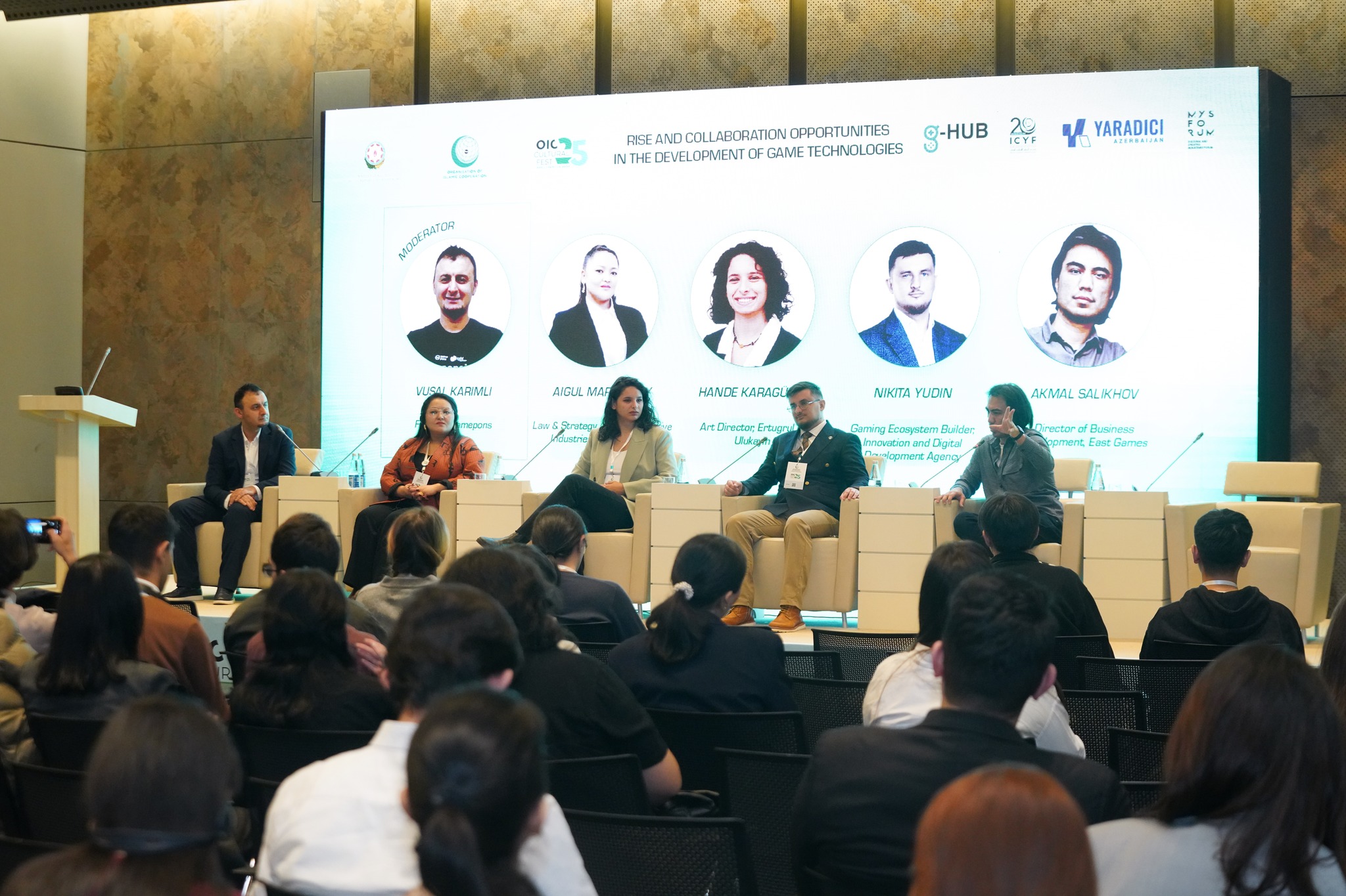 Qazaxıstanda yaradıcı sənayelər üzrə hüquq və strategiya məsləhətçisi Aygül Maratqızı , "Ərtoğrul Ulukayın" oyununun sənət direktoru Hande Karagüzel, İnnovasiya və Rəqəmsal İnkişaf Agentliyinin oyun ekosistemi qurucusu Nikita Yudin və Özbəkistanın "East Games" oyun studiyasının biznesin inkişafı üzrə direktoru Akmal Salixov təmsil etdikləri ölkələrin təcrübəsini bölüşüb, dünyadakı tendensiyaların öyrənilməsinin vacibliyini qeyd ediblər.