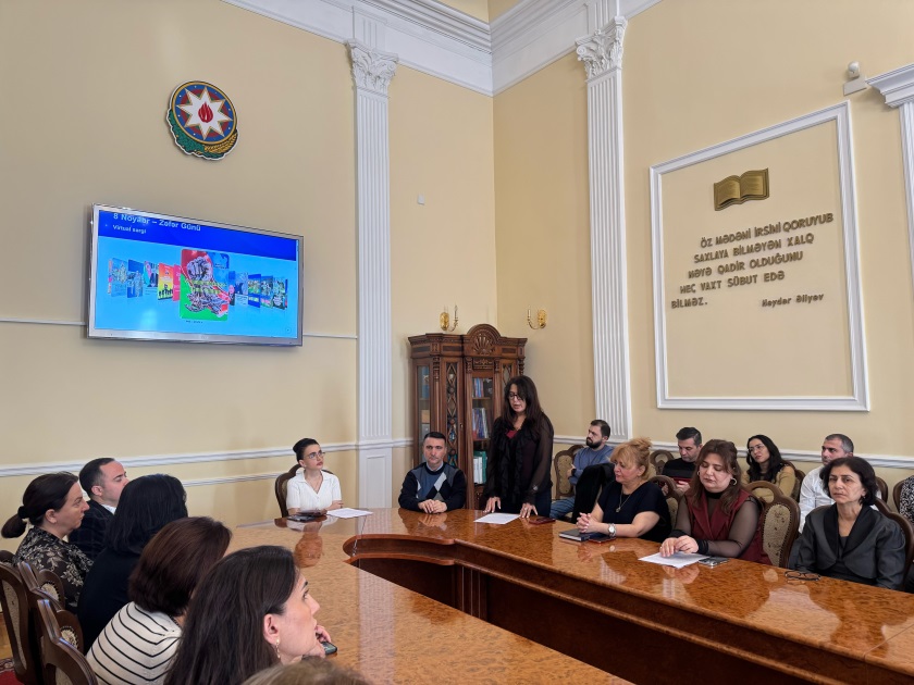 Noyabrın 7-də Prezident Kitabxanasının Konfrans zalında 8 Noyabr – Zəfər Günü və 9 Noyabr – Dövlət Bayrağı Gününə həsr olunmuş tədbir keçirilib.