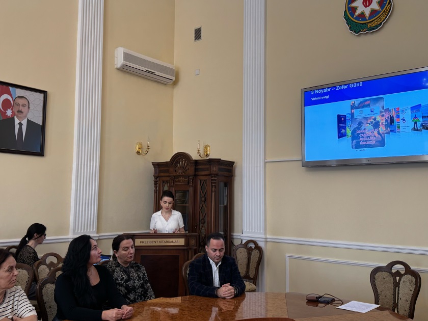 Tədbir çərçivəsində “8 Noyabr – Zəfər Günü” adlı virtual sərgi ictimaiyyətin istifadəsinə təqdim edilib. Virtual sərgidə 44 günlük Vətən müharibəsinin xronologiyası, Azərbaycan Ordusunun döyüş yolunu əks etdirən nəşrlər, qəhrəman əsgər və zabitlərimizin igidliyindən bəhs edən kitablar, eləcə də müharibə dövründə aparılmış hərbi, diplomatik və informasiya mübarizəsinə dair materiallar yer alır.