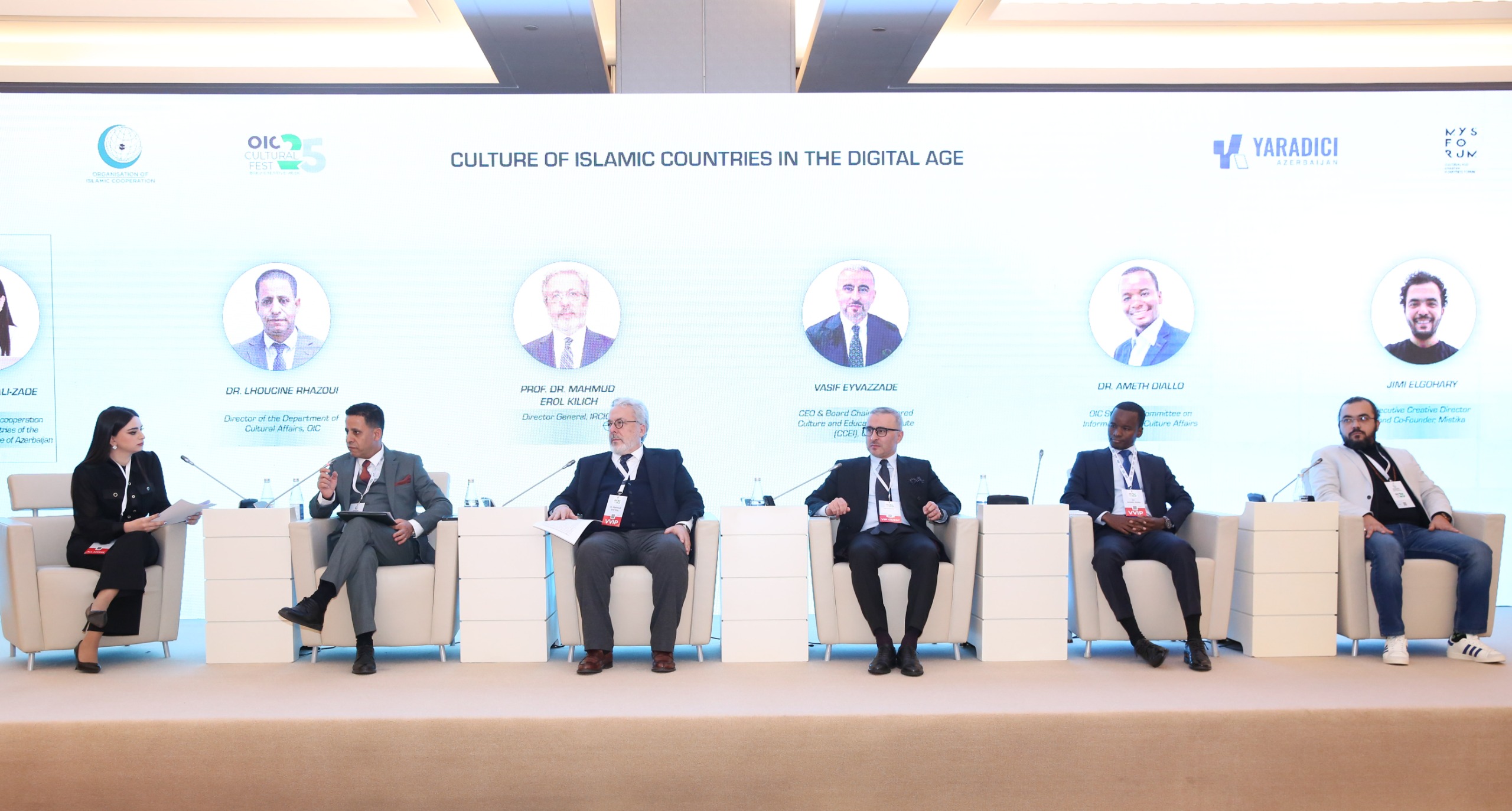 Paneldə İƏT Mədəniyyət işləri departamentinin direktoru Alhoucine Rhazoui, İƏT İslam Tarixi, İncəsənəti və Mədəniyyəti Araşdırma Mərkəzinin (IRCICA) baş direktoru professor Mahmud Erol Kılıç, İƏT-in Məlumat və mədəniyyət işləri üzrə daimi komitəsinin baş direktoru Ameth Diallo, ABŞ-də Mədəniyyət və Təhsil İnstitutunun baş direktoru Vasif Eyvazzadə və "Mistika" yaradıcılıq qurumunun (Birləşmiş Ərəb Əmirlikləri) həmtəsisçisi və icraçı direktoru Mohammad Jamal Abdelfattah Elgohary çıxış ediblər.