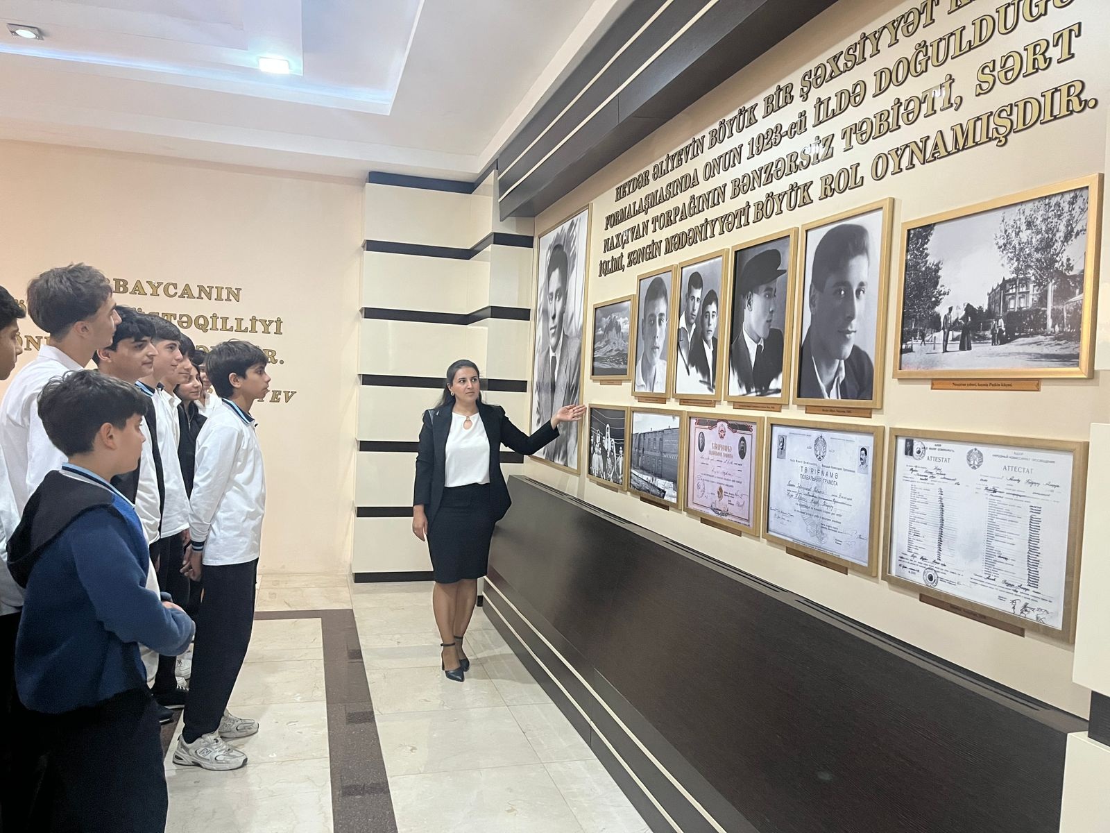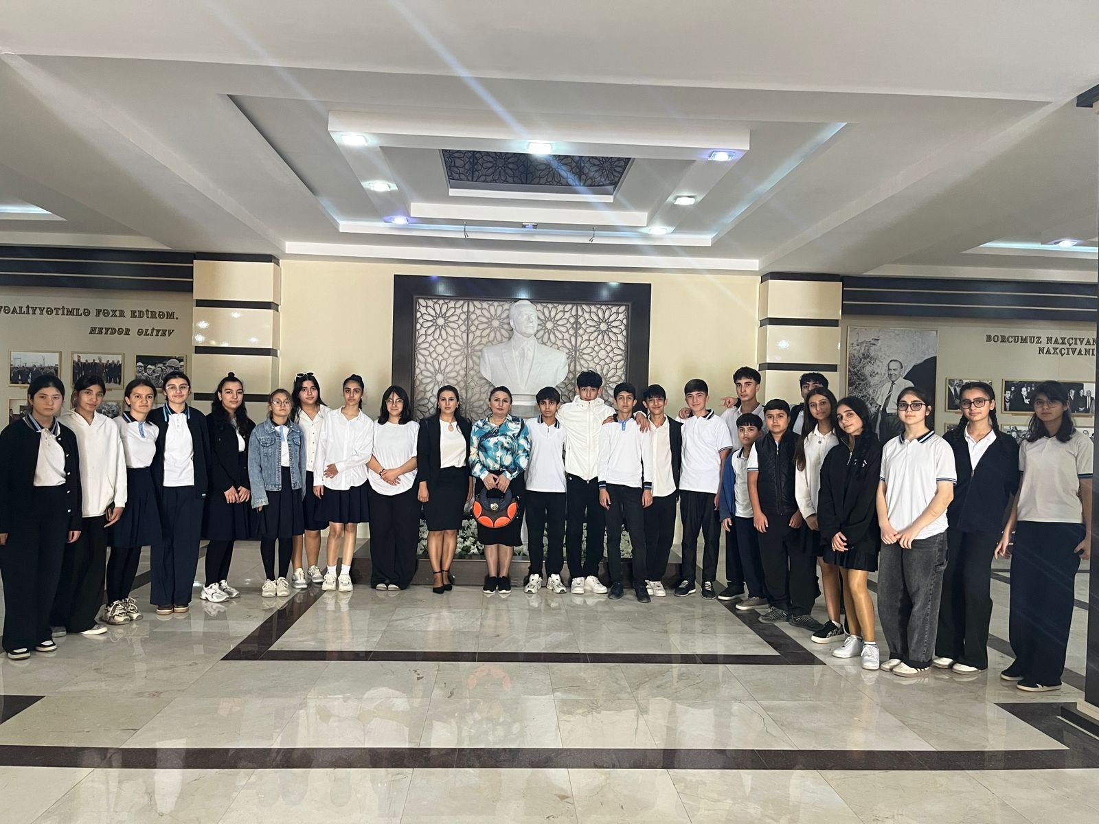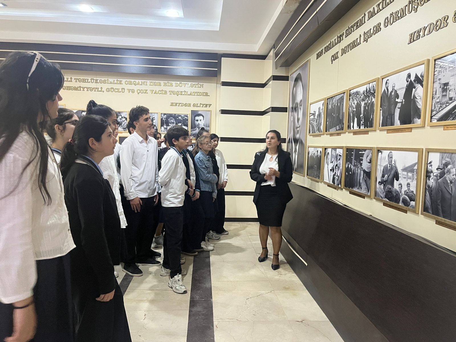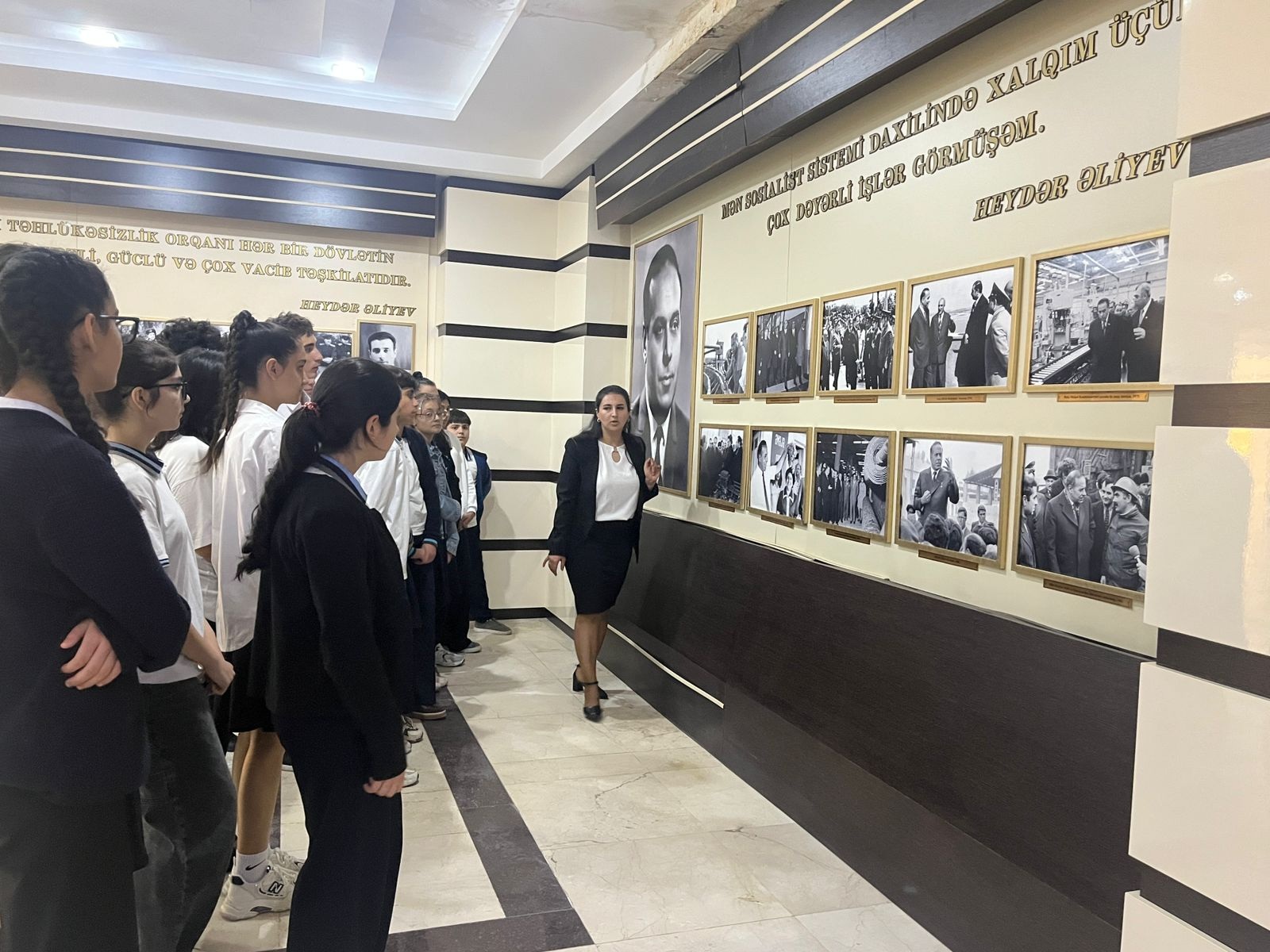 Sonda şagirdlər Ümummilli Lider Heydər Əliyevin həyat və siyasi fəaliyyətini əks etdirən ekspozisiya zalı ilə tanış olublar.