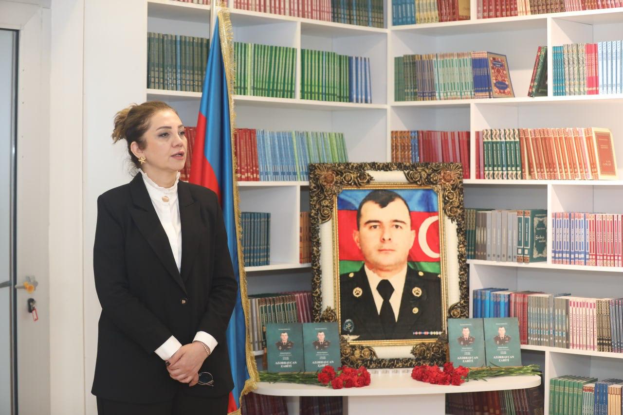 Sonda həyat yoldaşı Xuraman Qənbərova şəhidə həsr etdiyi “Azərbaycan zabiti” adlı kitabını tədbir iştirakçılarına təqdim edib.