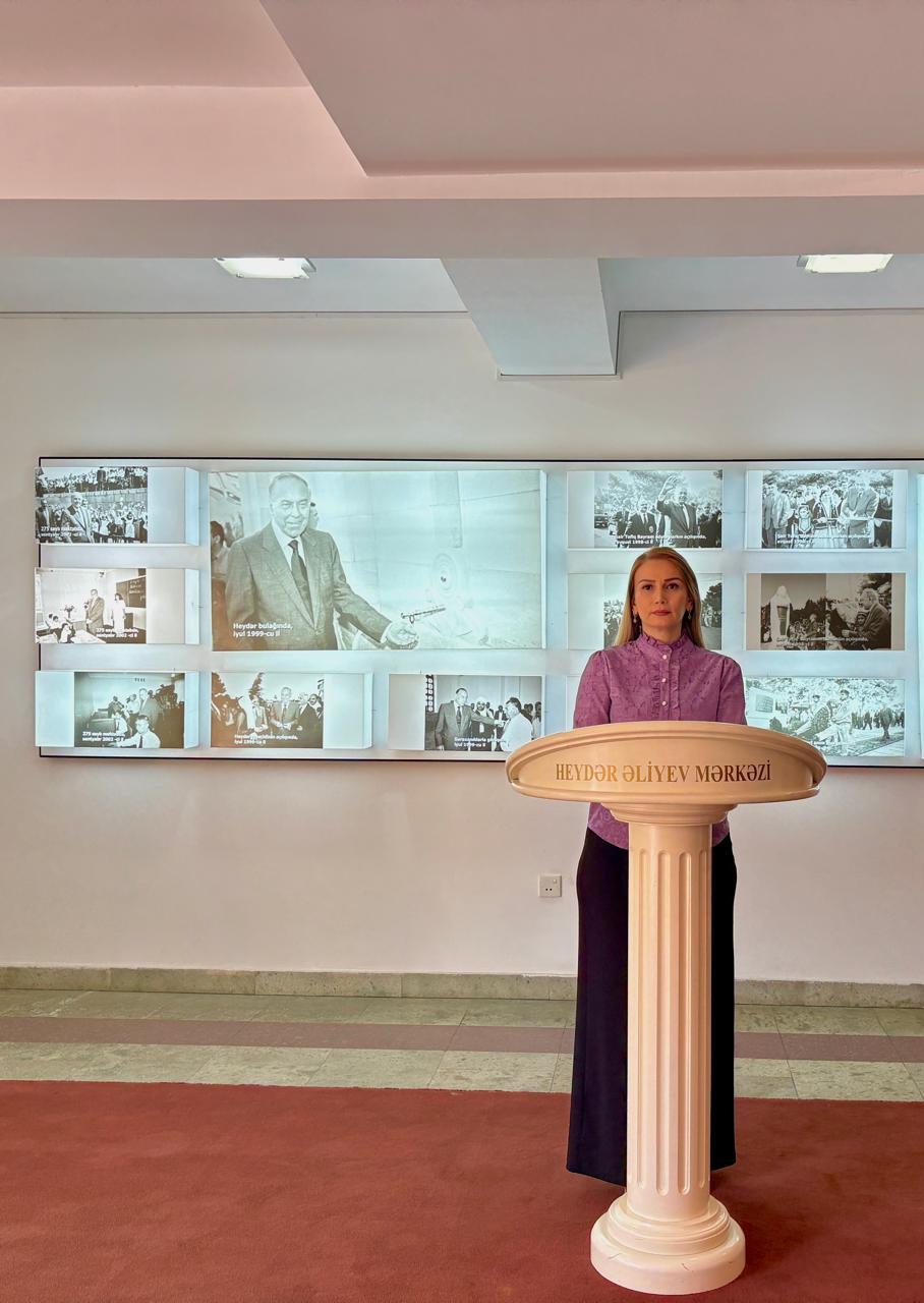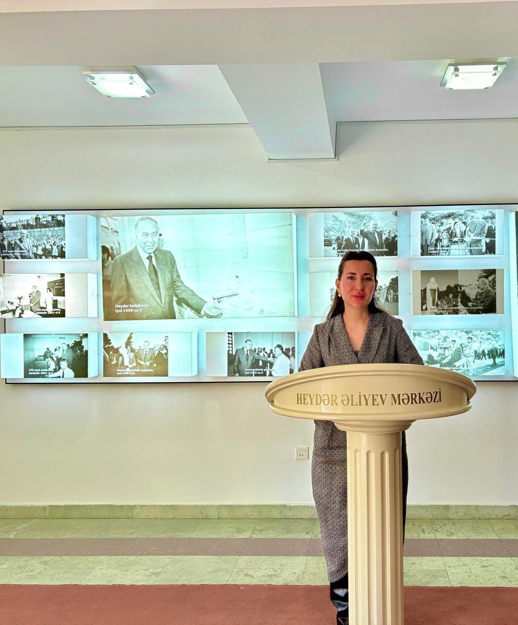 Sonda tədbir iştirakçıları Mərkəzin ekspozisiya zalında Ulu Öndər Heydər Əliyevin zəngin irsi və siyasi fəaliyyəti ilə yaxından tanış olublar.