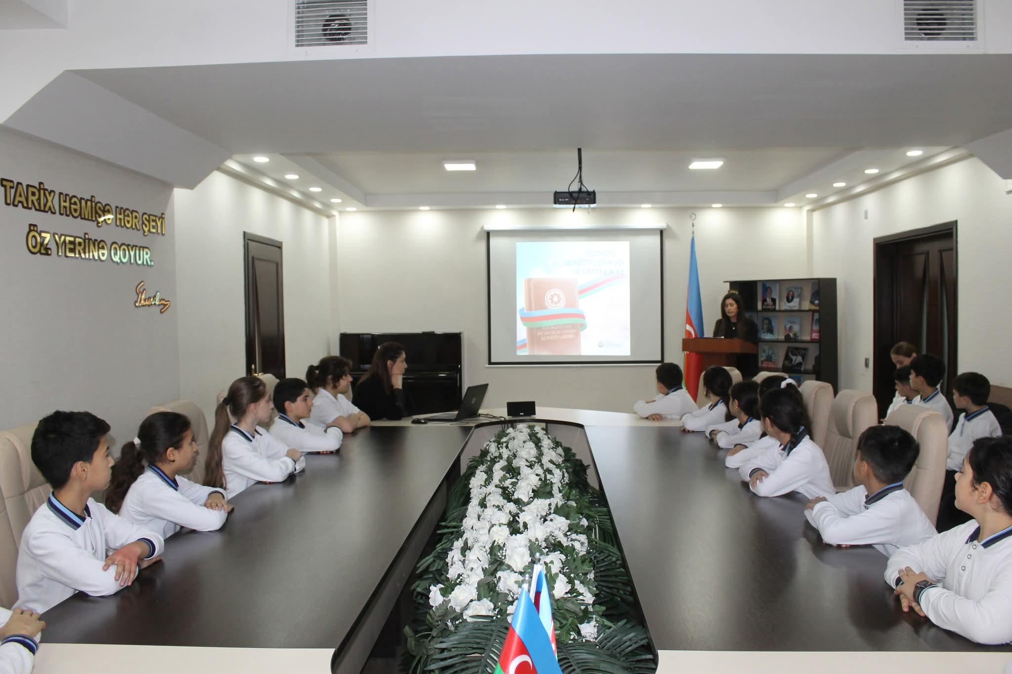 Açıq dərsdə “Zəfərimiz Heydər Əliyev ideyalarının təntənəsidir” mövzusunda mühazirə dinlənilib, Ulu Öndər Heydər Əliyevin əvəzsiz xidmətlərindən danışılıb və şagirdlərlə müzakirələr aparılıb.