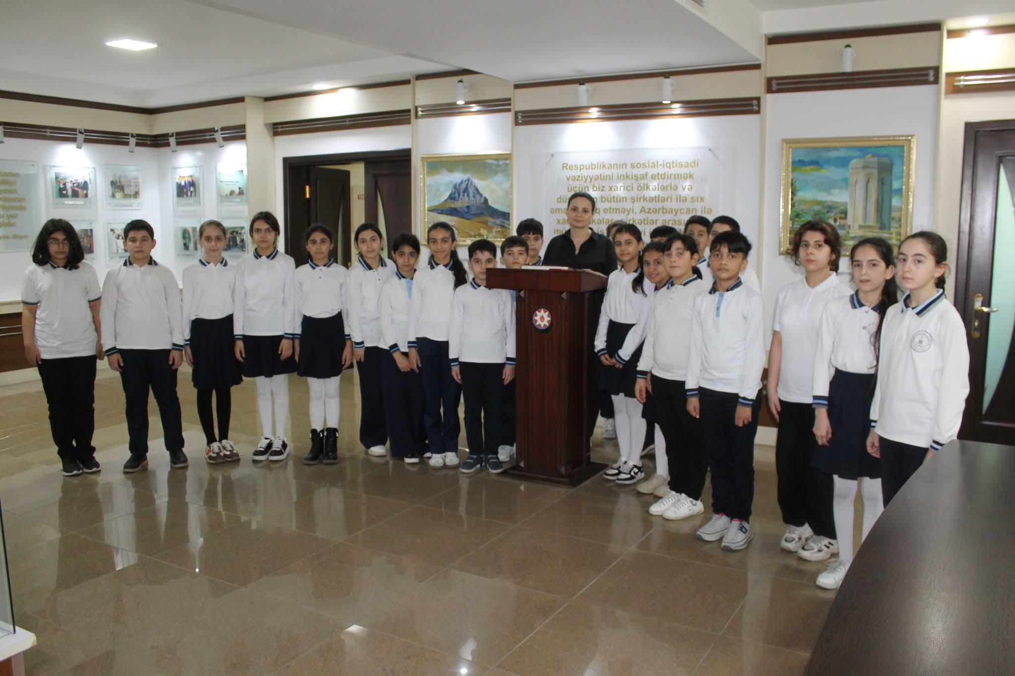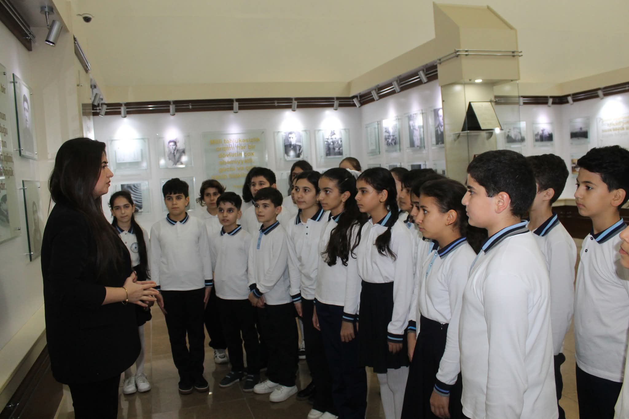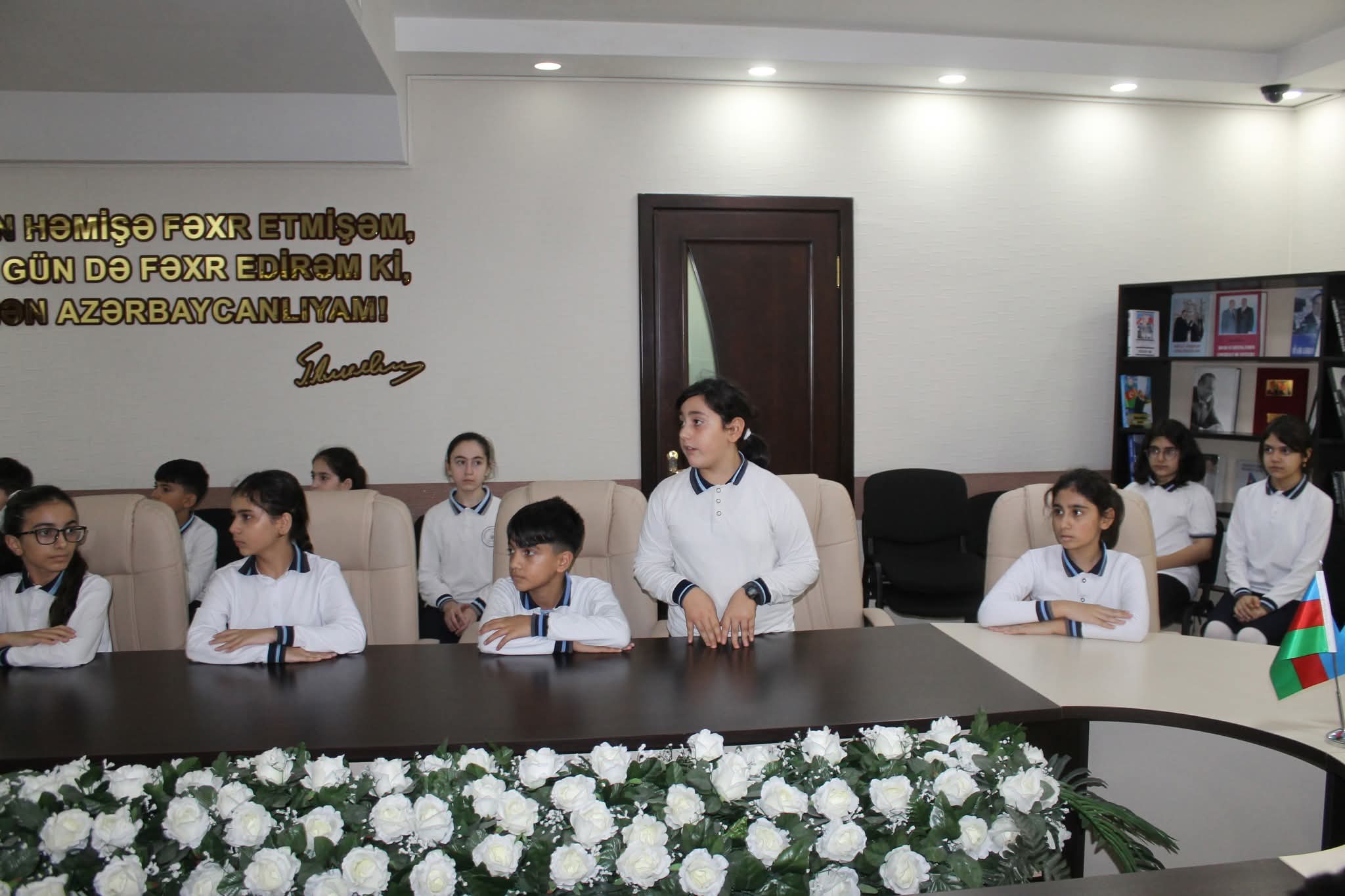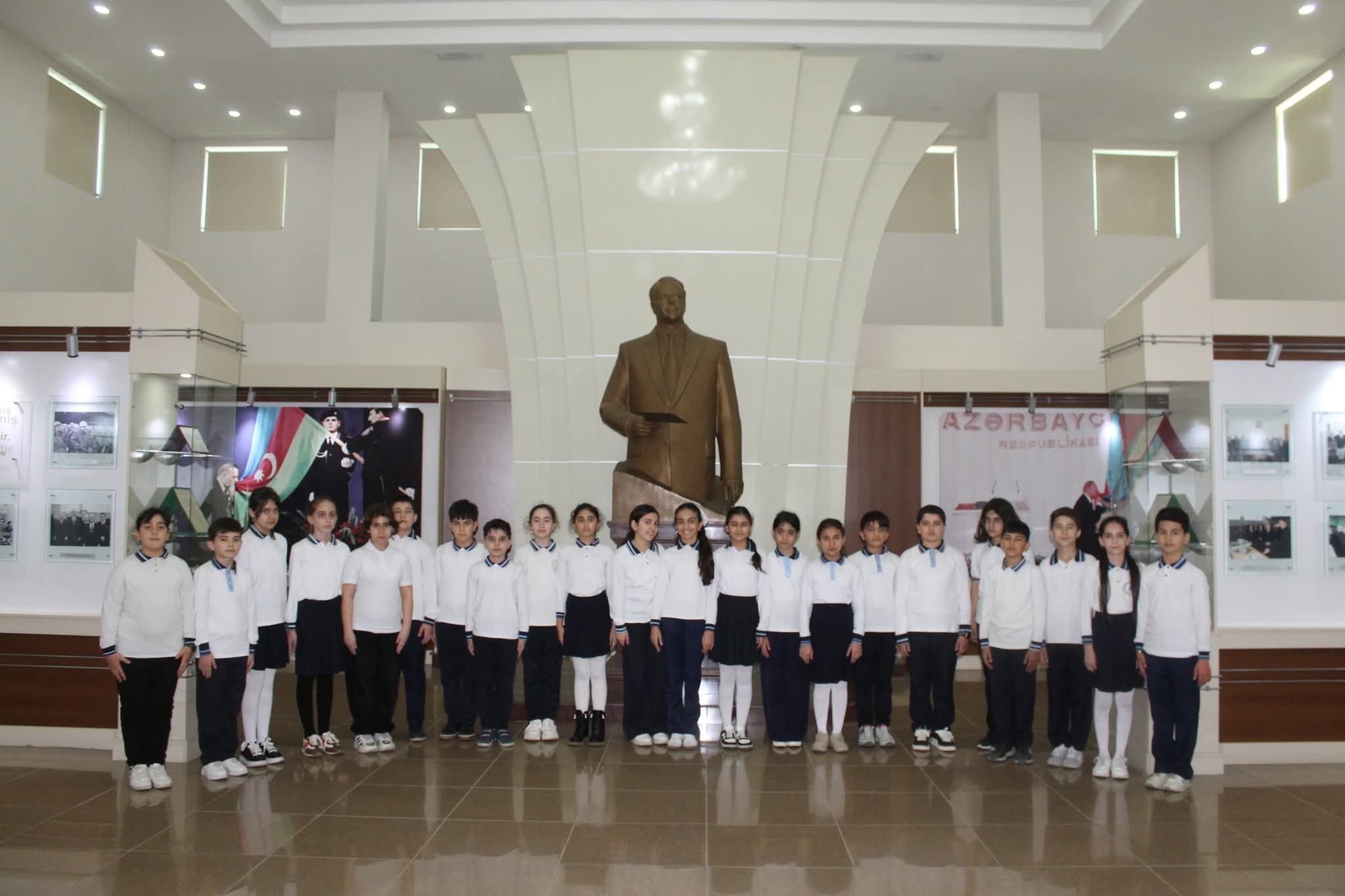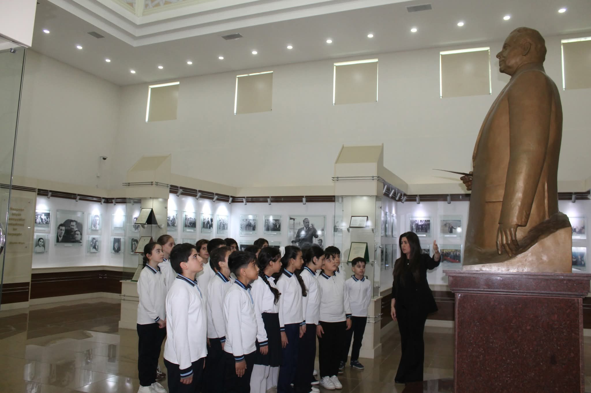 Daha sonra Heydər Əliyevin büstü ziyarət edilib və şagirdlərə Ulu Öndərin zəngin siyasi irsini əks etdirən ekspozisiya haqqında məlumat verilib.