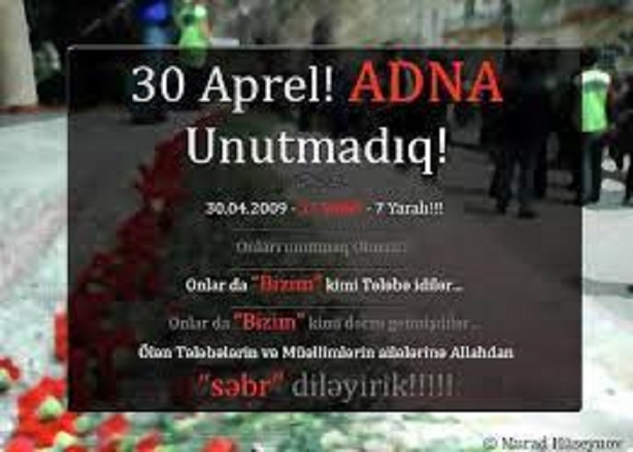 Bundan qabaq da Azərbaycanın müxtəlif yerlərində, o cümlədən paytaxtımızda terror faktı olub. Amma heç birində gülləni beynimizə, gələcəyimizə, gələcəyimizin mədəni, intellektual bazası olan tələbələrə tuşlamayıblar. 30 aprel 2009-cu il tarixində ADNA özünün qanlı tarixini yaşayıb. Artıq bu gün "30 aprel" demək kifayətdir ki, o qanlı tarixçəni bir daha bütün acısıyla yaşayasan. Akademiyanın 2-ci korpusu o gün təkcə Azərbaycanın deyil, bütün dünyanın diqqət mərkəzinə çevrildi.