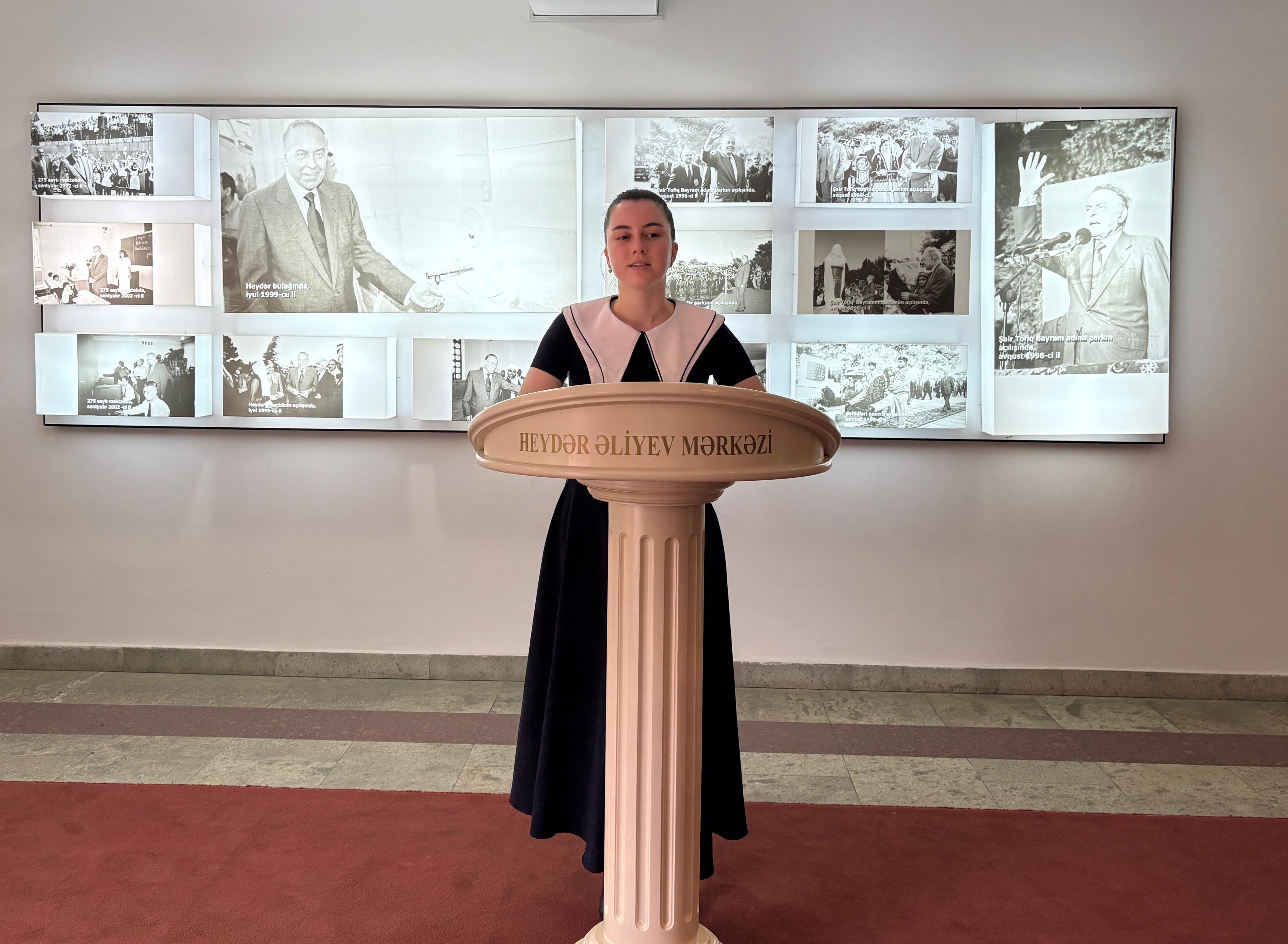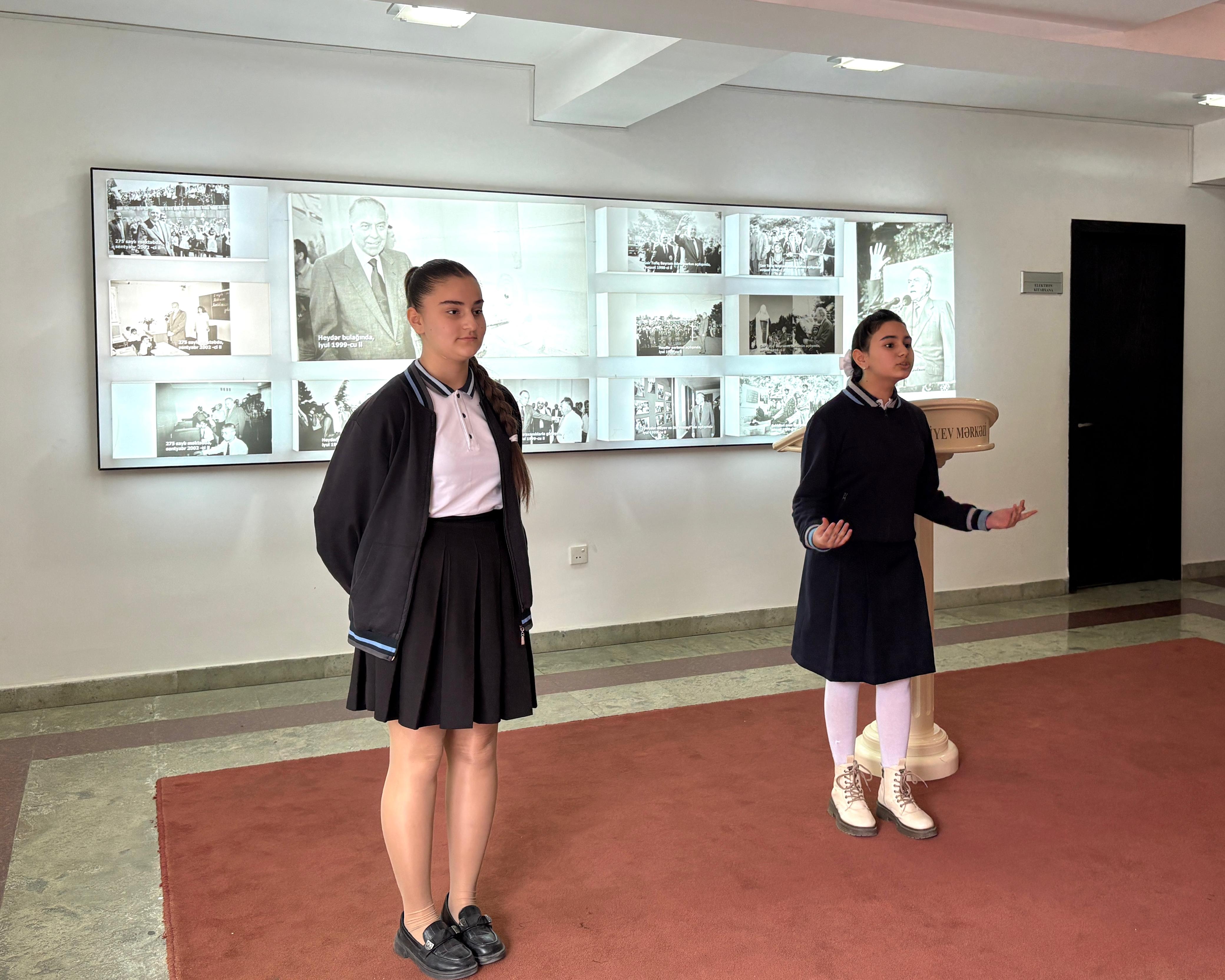 Tədbirin bədii hissəsində 114 və 154 nömrəli tam orta məktəblərinin şagirdlərinin ifalarında şeir kompozisiyaları dinlənilib.