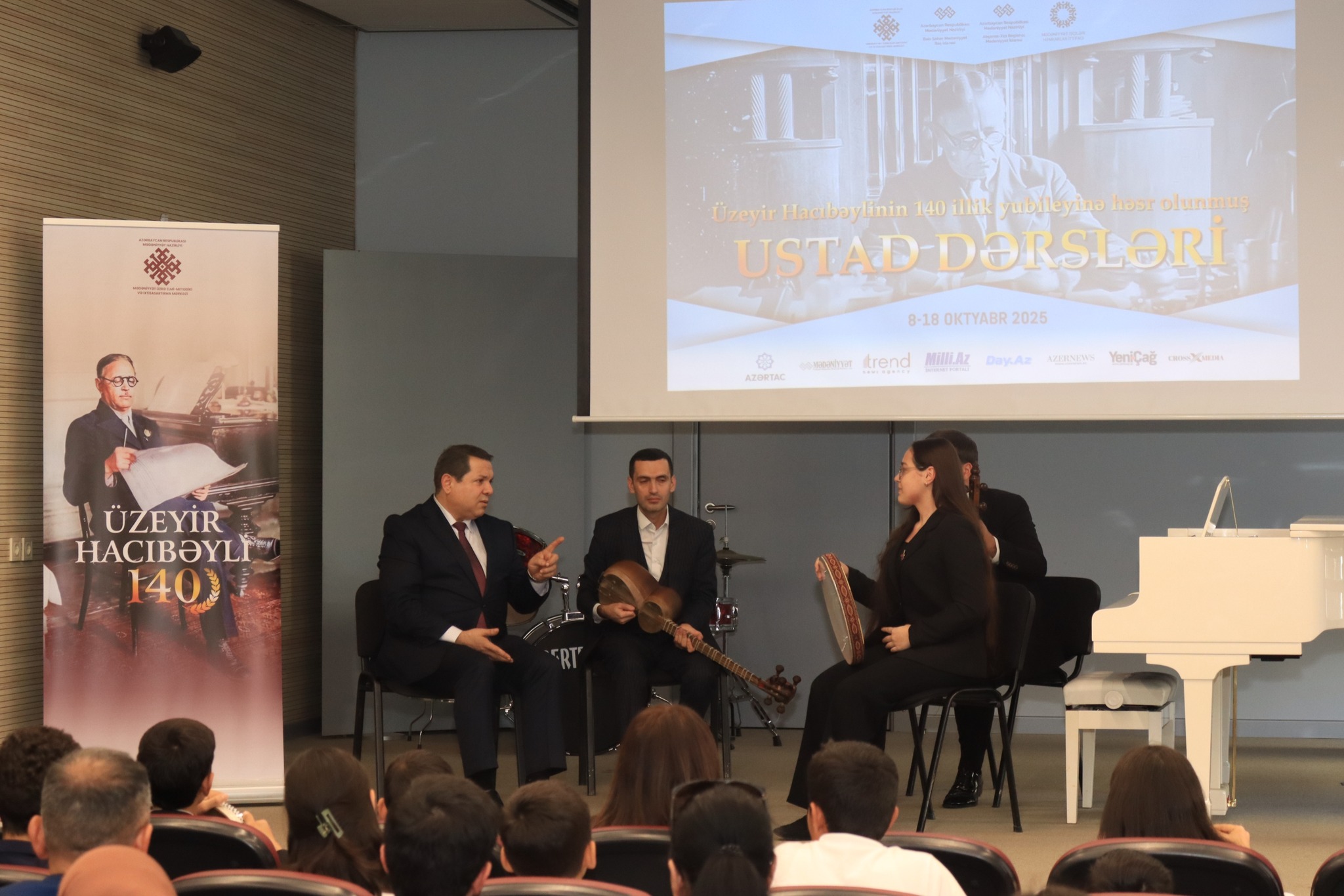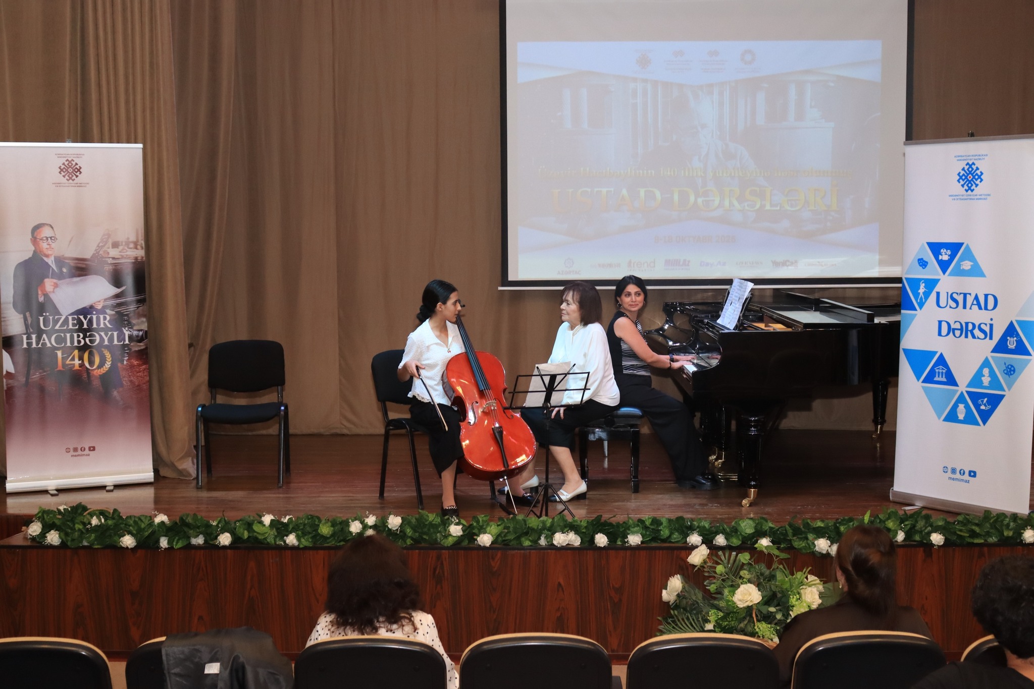 Onu da əlavə edək ki, böyük musiqi xadimi Üzeyir Hacıbəylinin 140 illiyinə töhfə olan ustad dərsləri tar, kamança, saz, balaban, qanun, xanəndəlik, fortepiano, violin, klarnet, violonçel, vokal və rəqs ixtisaslarını əhatə edib.