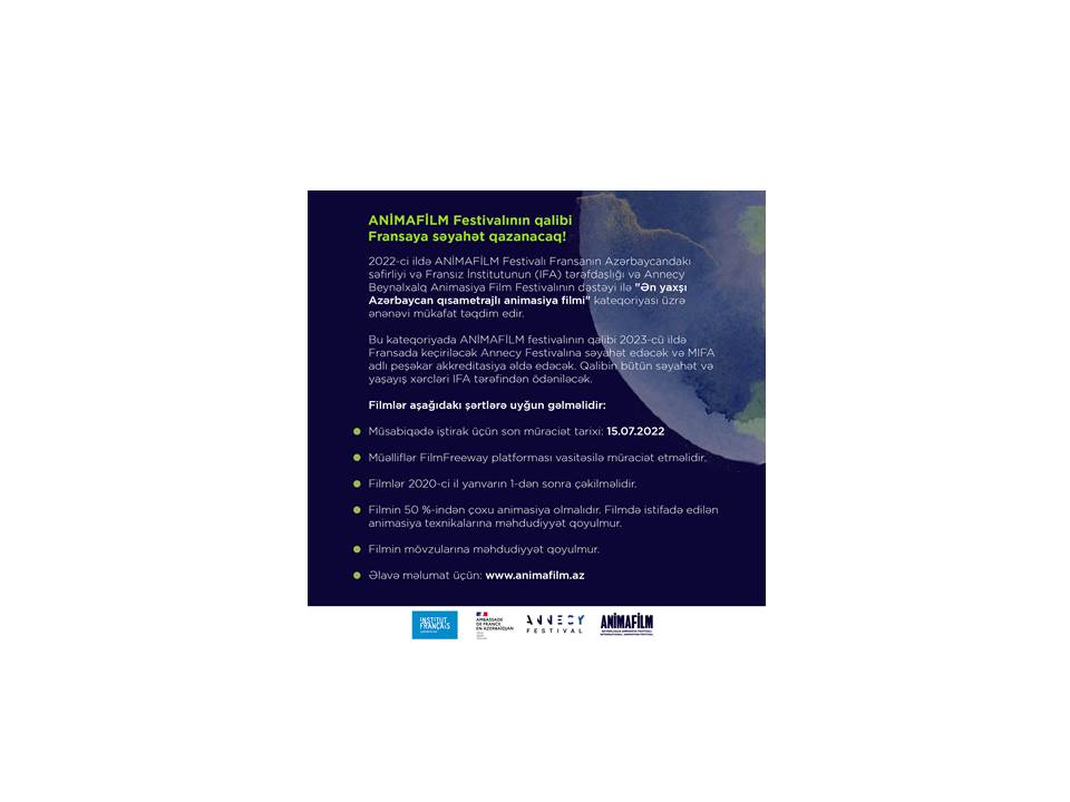 Xatırladaq ki, 2020-ci ildə ANİMAFİLM Festivalının "Ən yaxşı Azərbaycan qısametrajlı animasiya filmi" kateqoriyasının qalibi “Quzğun” filmi idi. Filmin müəllifi Fidan Axundova 2021-ci ilin iyun ayında Fransaya səfər edərək Annecy festivalında iştirak etdi. 2021-ci ildə isə həmin kateqoriyanın qalibi rejissor Firəngiz Qurbanovanın “Araqçın” filmi idi. Bu mükafatlar da ANİMAFİLM Festivalının Azərbaycan Fransız İnstitutu, Fransanın Azərbaycandakı səfirliyi və Annecy Beynəlxalq Animasiya Film Festivalı arasında əməkdaşlıq nəticəsində reallaşıb.