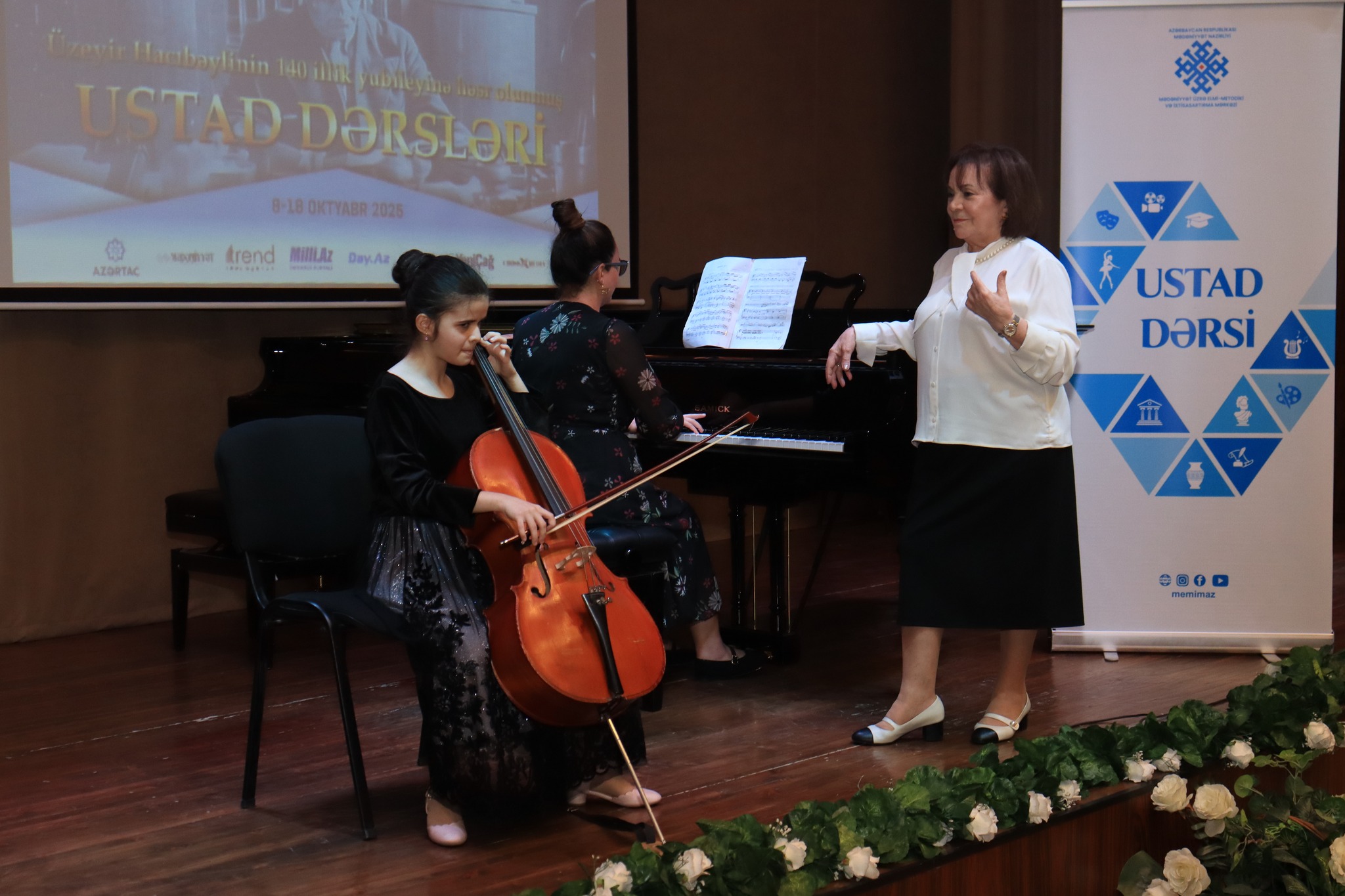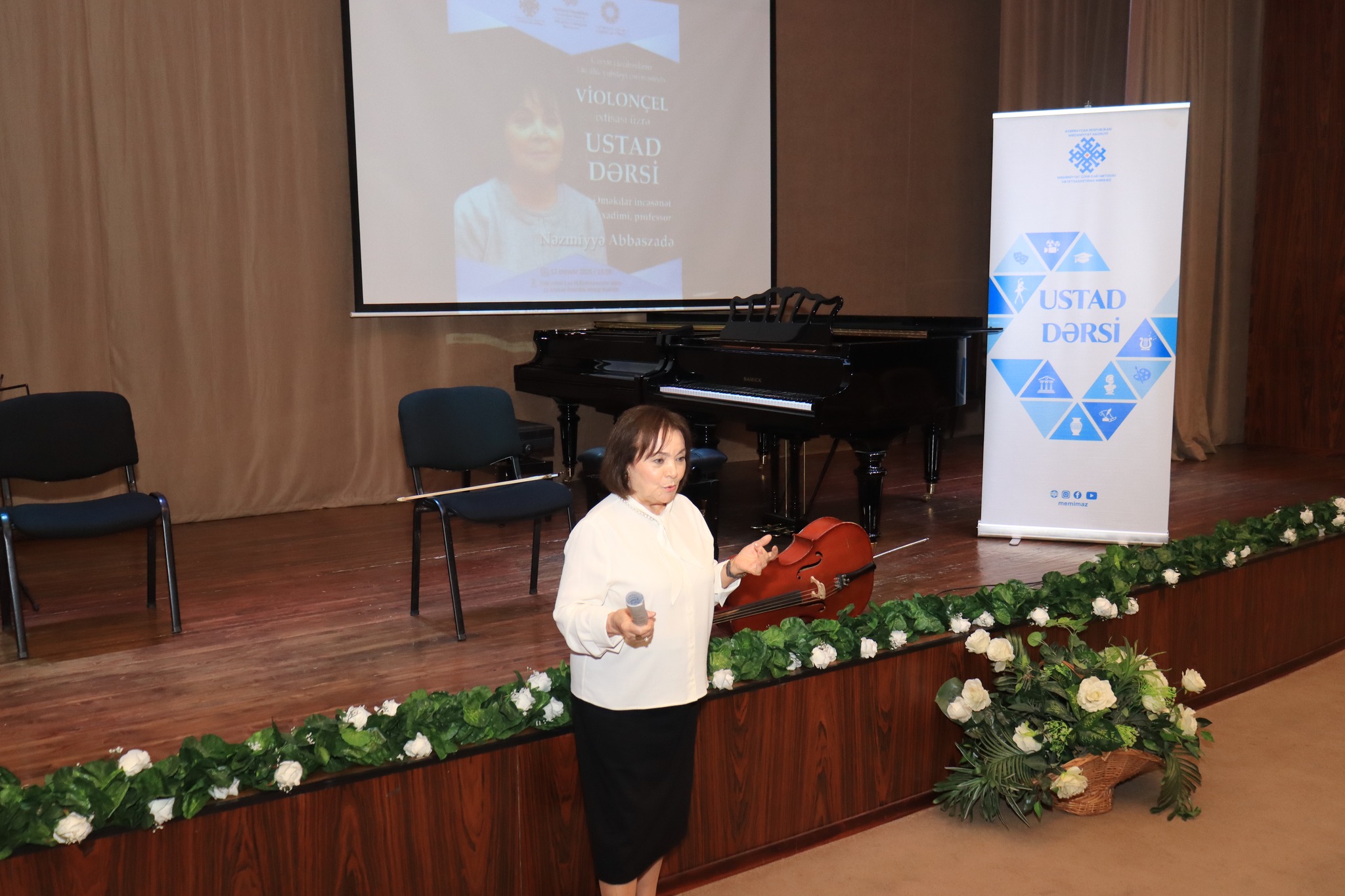 Üzeyir Hacıbəyli adına Bakı Musiqi Akademiyası İfaçılıq fakültəsinin dekanı Əməkdar incəsənət xadimi, professor Nəzmiyyə Abbaszadənin apardığı ustad dərsində Q.Qarayev adına Mərkəzi İncəsənət Məktəbi, Leopold və Mstislav Rostropoviçlər adına 21 nömrəli və R.Behbudov adına 2 nömrəli onbirillik musiqi məktəblərinin şagirdləri violonçeldə ifalarını təqdim ediblər. N.Abbaszadə onlara alətdə ifa zamanı xüsusi diqqət yetirilməli məqamlardan danışıb, öz tövsiyələrini verib.