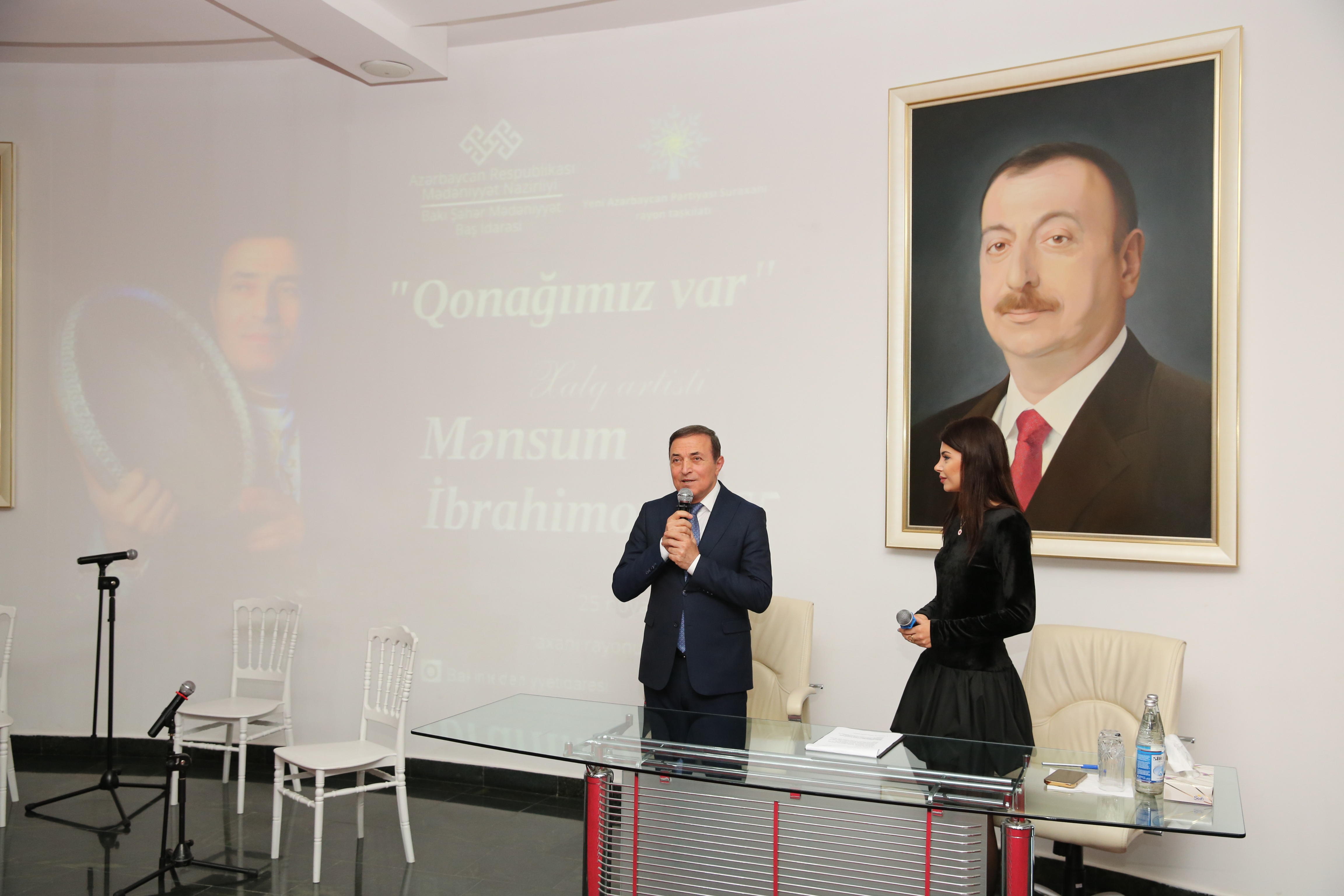 Bakı Şəhər Mədəniyyət Baş İdarəsinin və Yeni Azərbaycan Partiyası Suraxanı rayon təşkilatının birgə təşkilatçılığı ilə “Qonağımız var” layihəsi çərçivəsində Suraxanı rayon Heydər Əliyev Mərkəzində tanınmış xanəndə, Xalq artisti, “Şöhrət”, “Şərəf” ordenli, Azərbaycan Milli Konservatoriyasının professoru Mənsum İbrahimovun 65 illik yubileyinə həsr olunmuş görüş keçirilib.