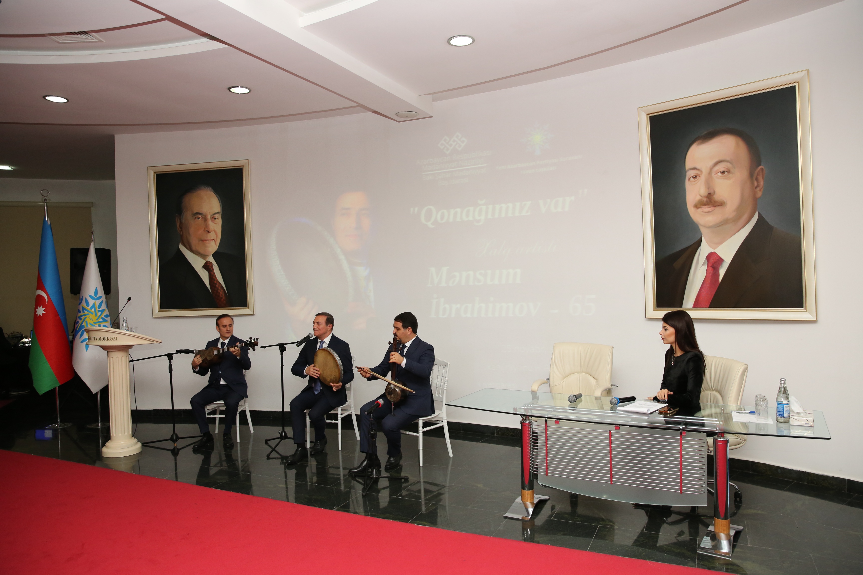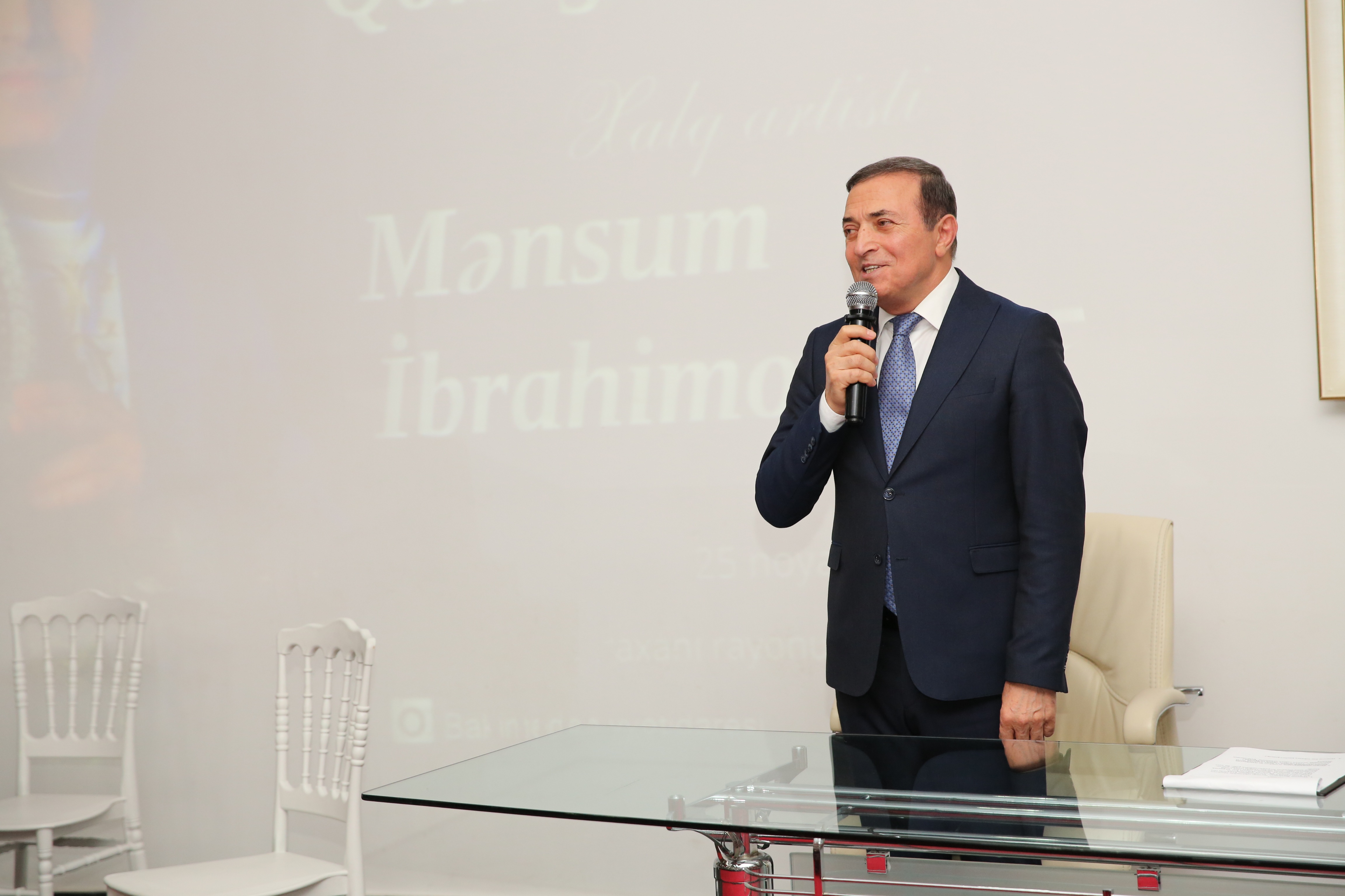 Mənsum İbrahimov çıxışında yaratdığı ölməz obrazlardan, Azərbaycan muğamının inkişafı, tədrisi və təbliği istiqamətində göstərdiyi xidmətlərdən bəhs edib, muğamlarımızdan, xalq mahnı və təsniflərimizdən danışıb və ona ünvanlanan sualları cavablandırıb.
