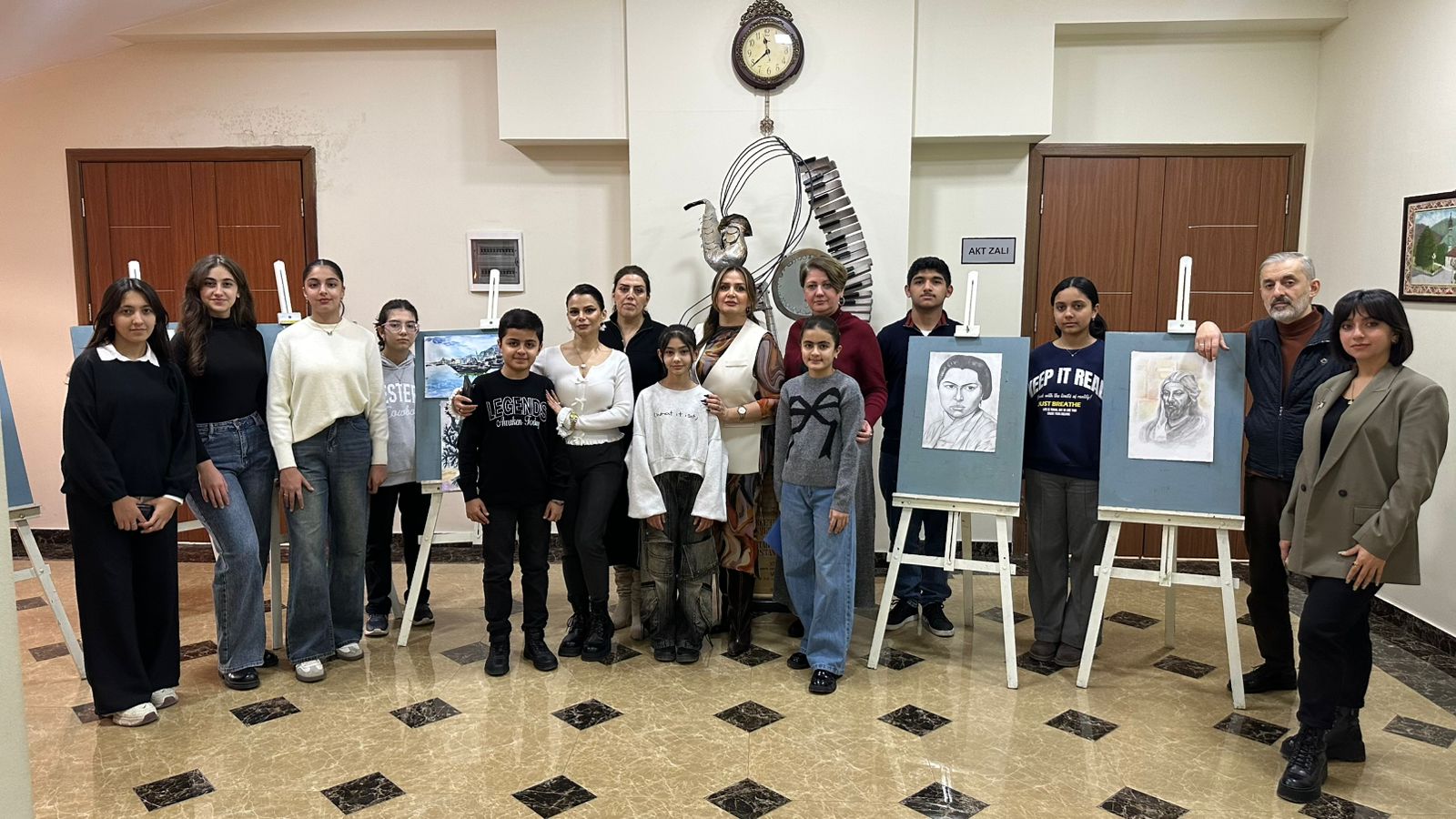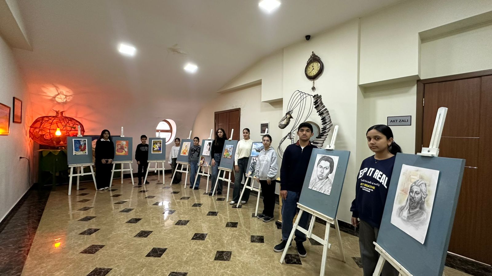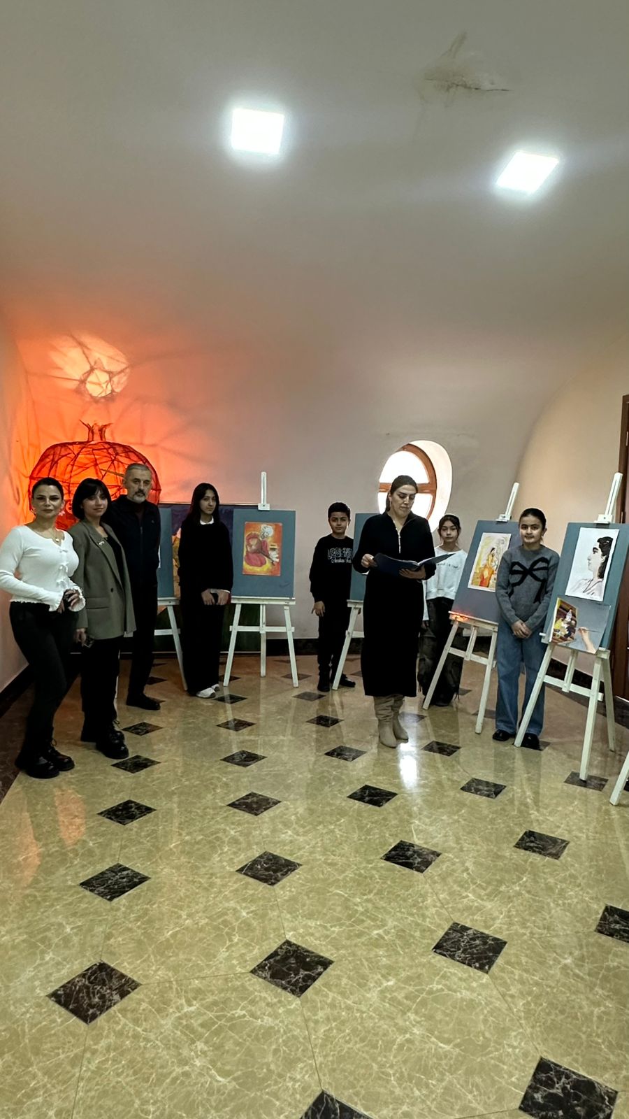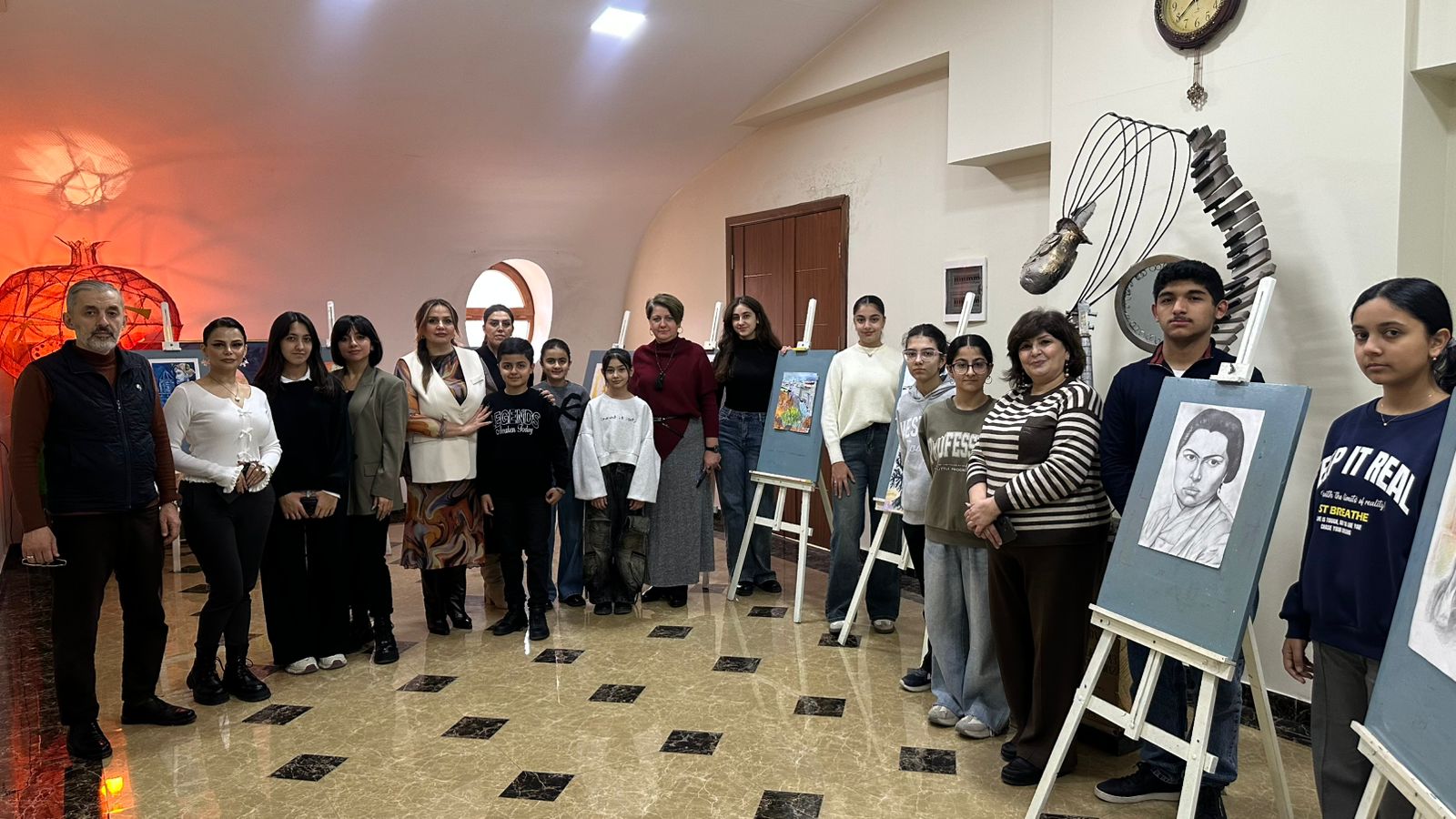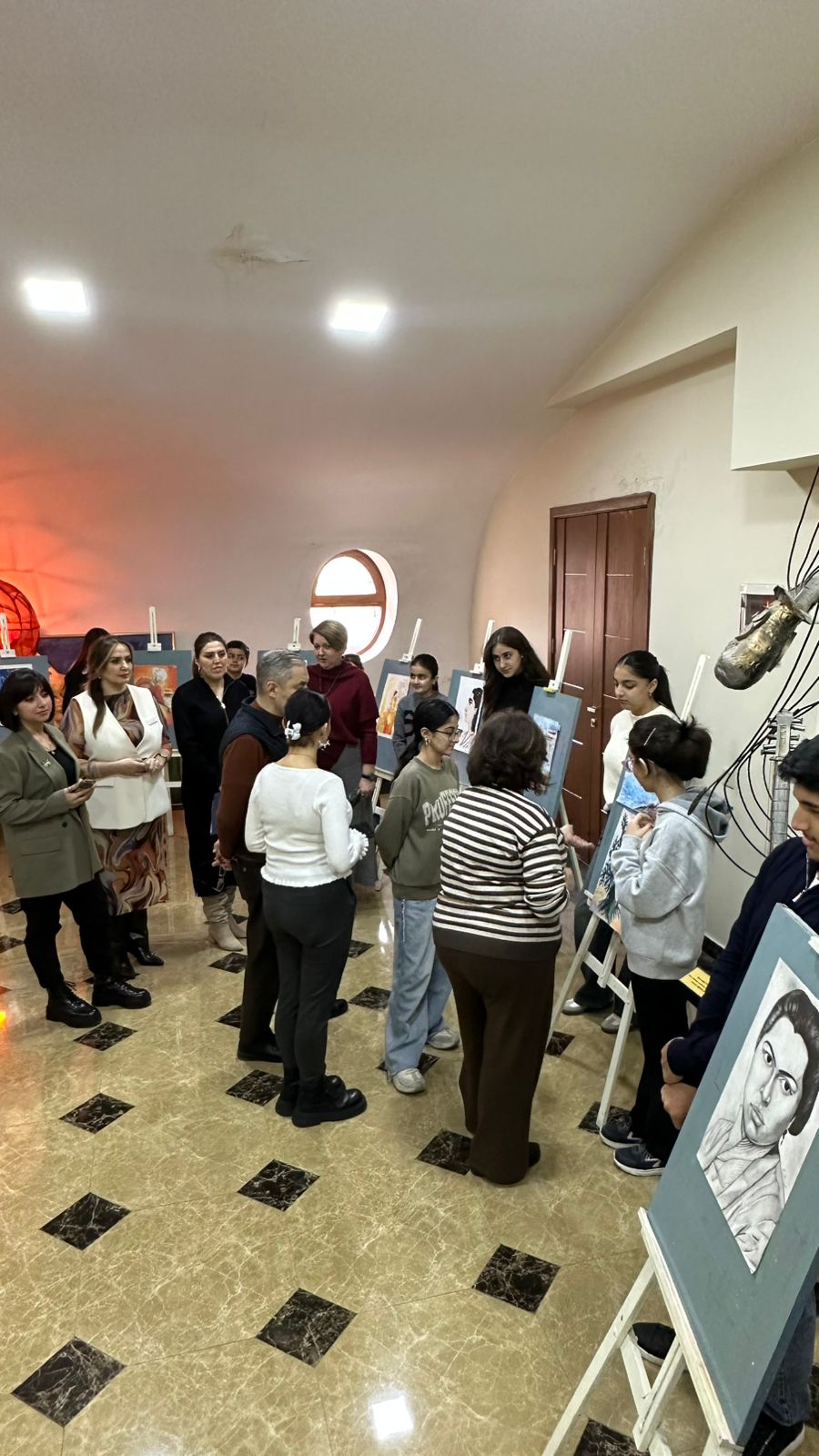 Daha sonra sərgi təqdim edilib. Sərgidə rəssamlıq şöbəsinin şagirdləri əsasən sənətkarın “Azərbaycan qədim mədəniyyət diyarıdır” silsiləsindən olan əsərlərini təsvir ediblər.
