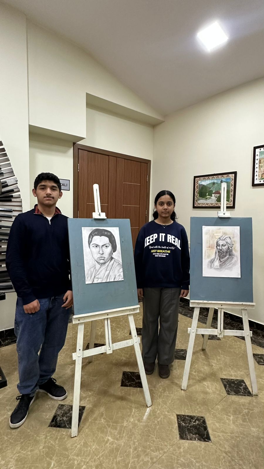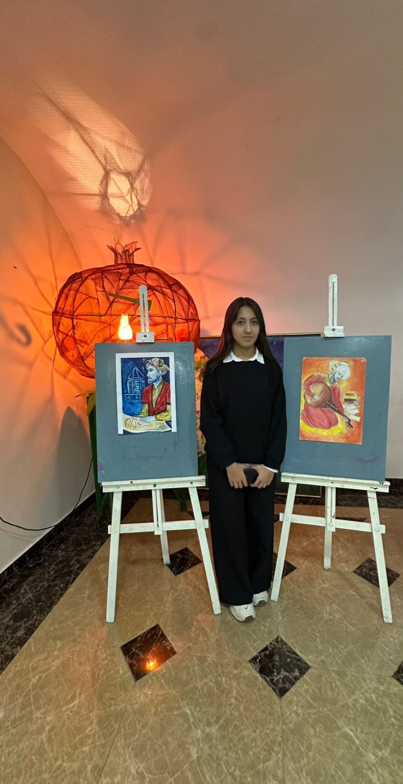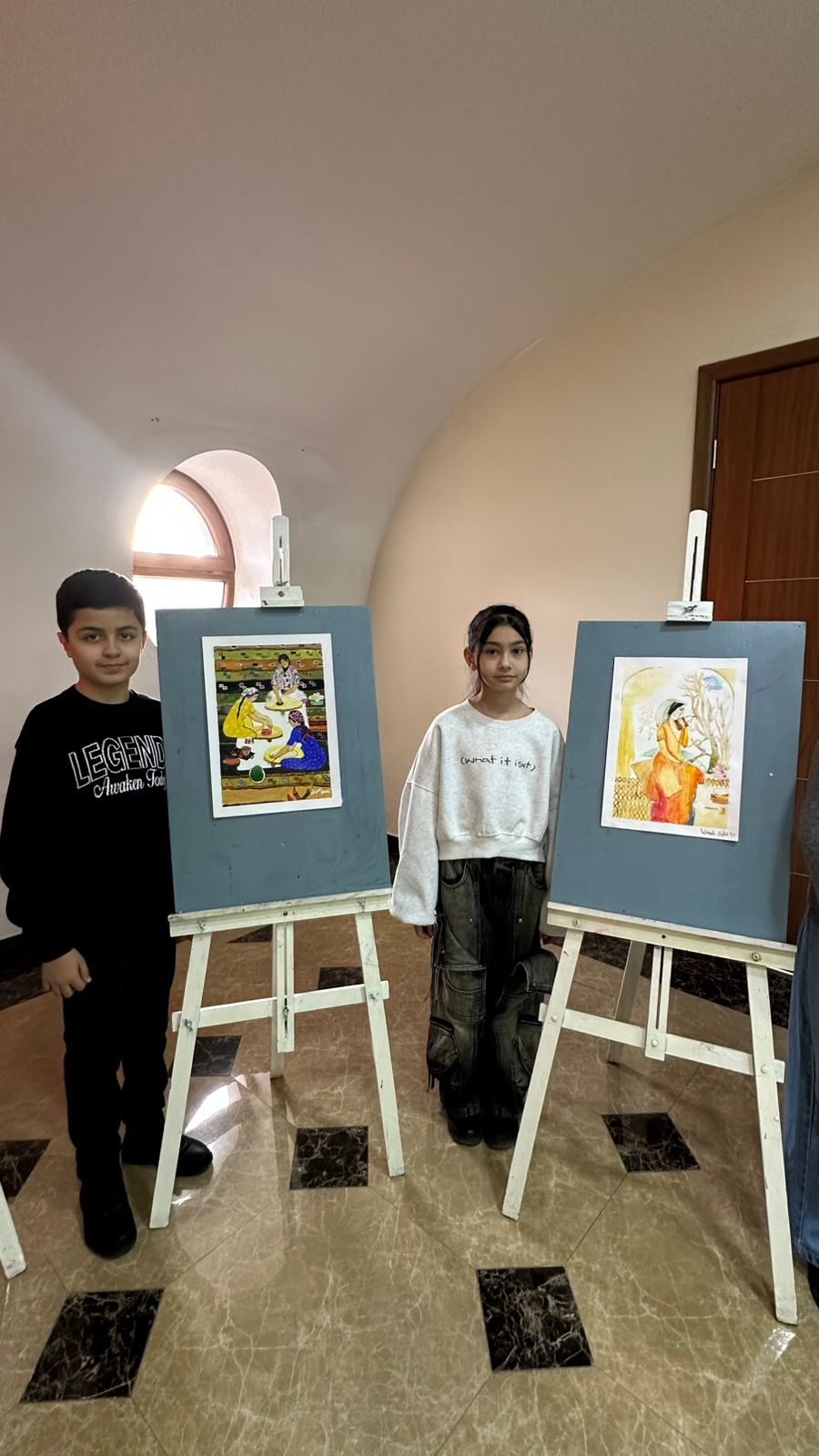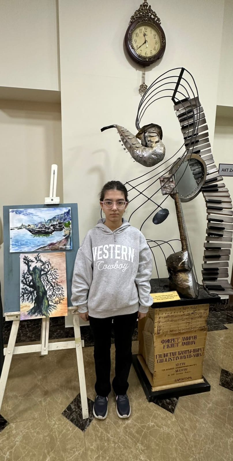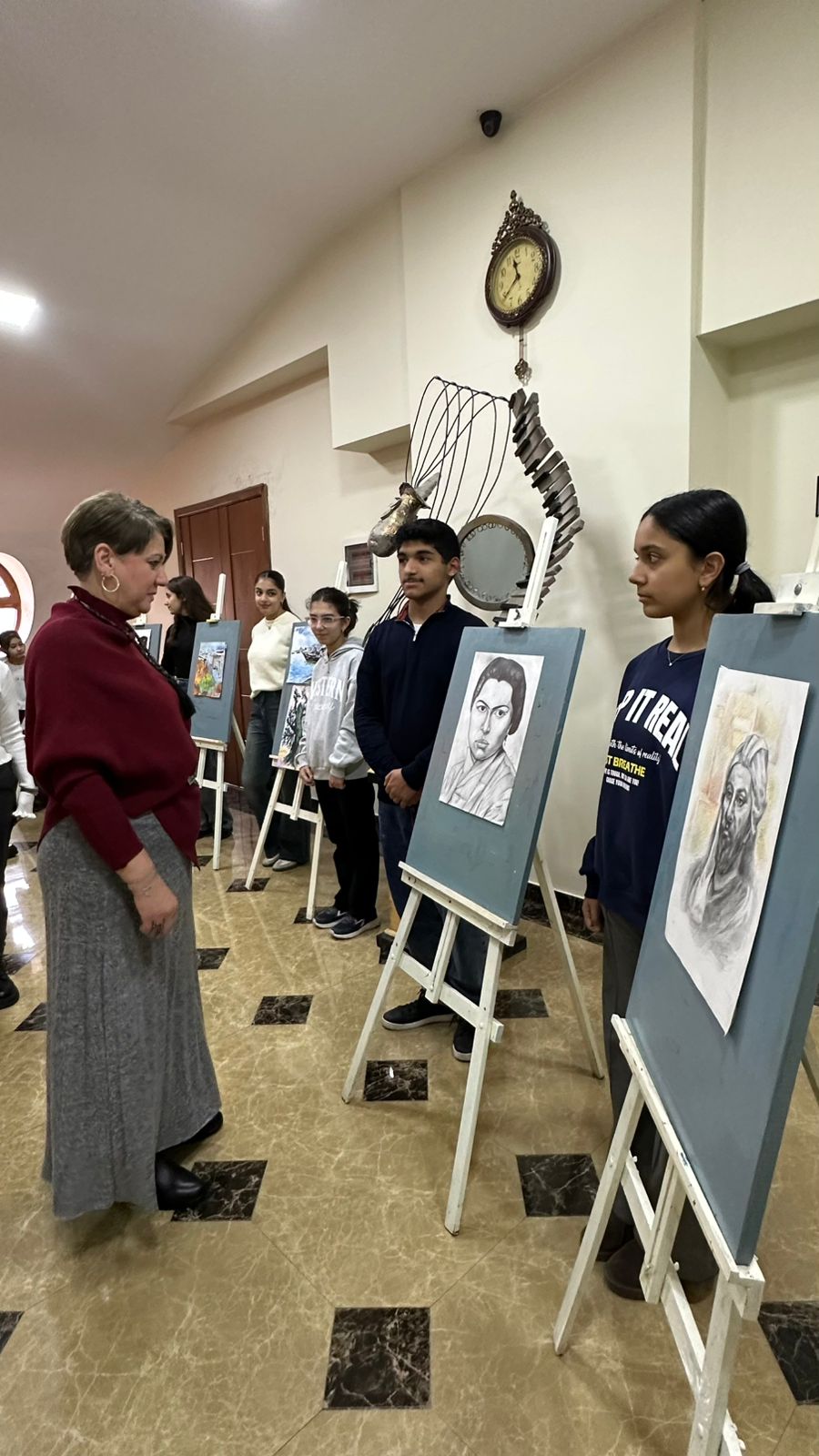 Daha sonra sərgi təqdim edilib. Sərgidə rəssamlıq şöbəsinin şagirdləri əsasən sənətkarın “Azərbaycan qədim mədəniyyət diyarıdır” silsiləsindən olan əsərlərini təsvir ediblər.