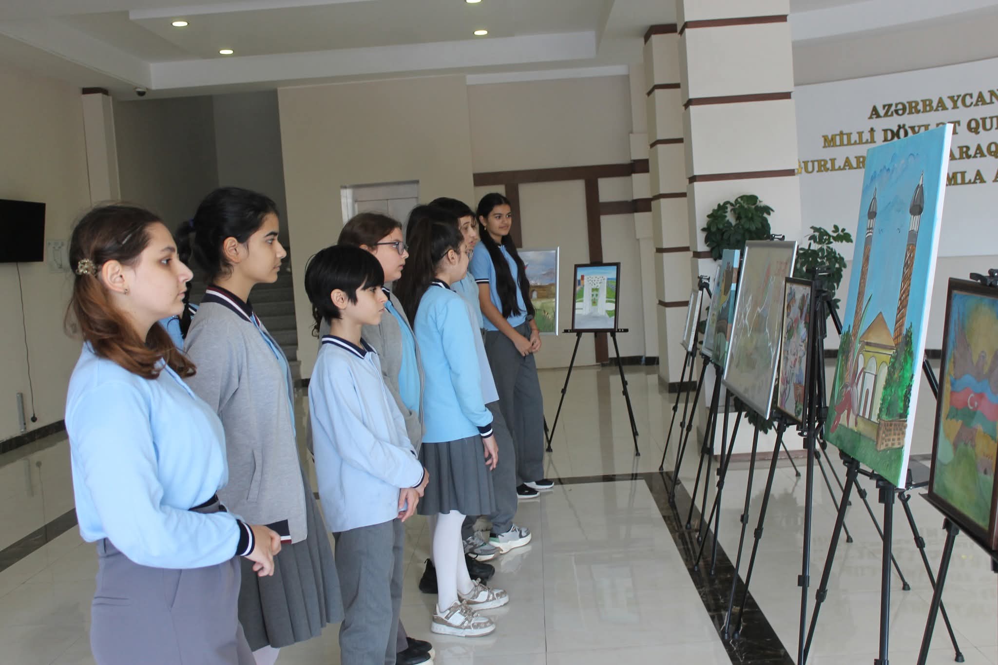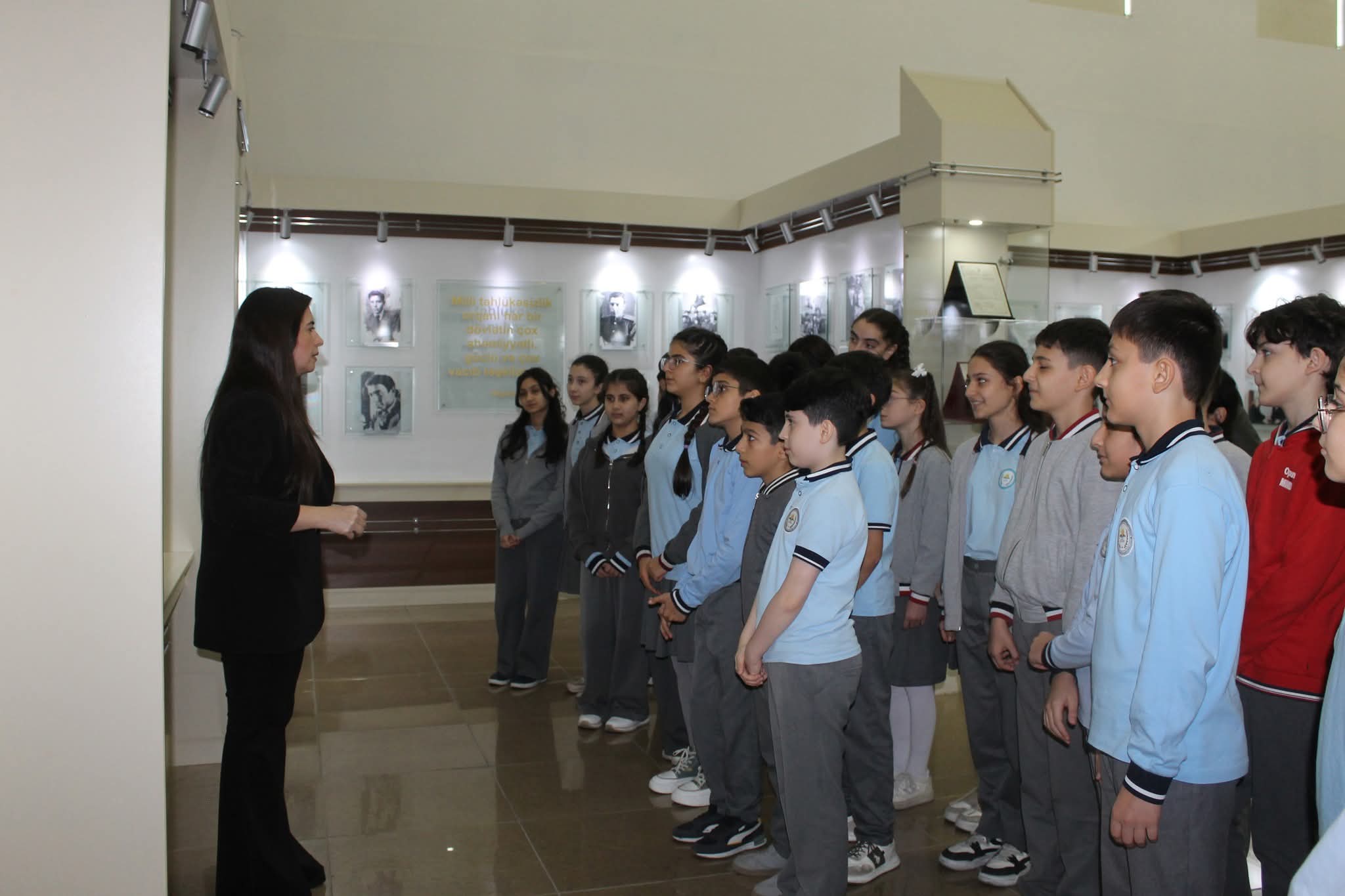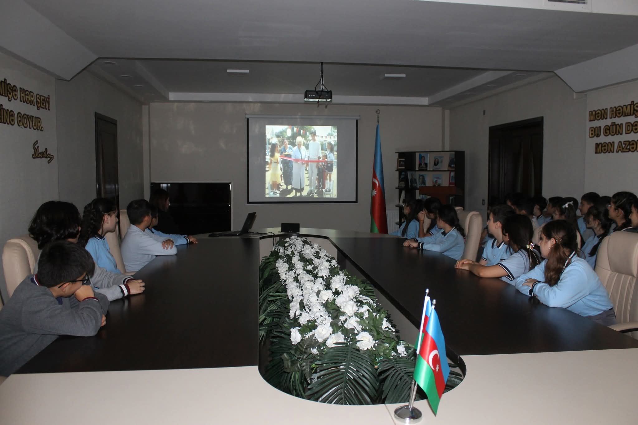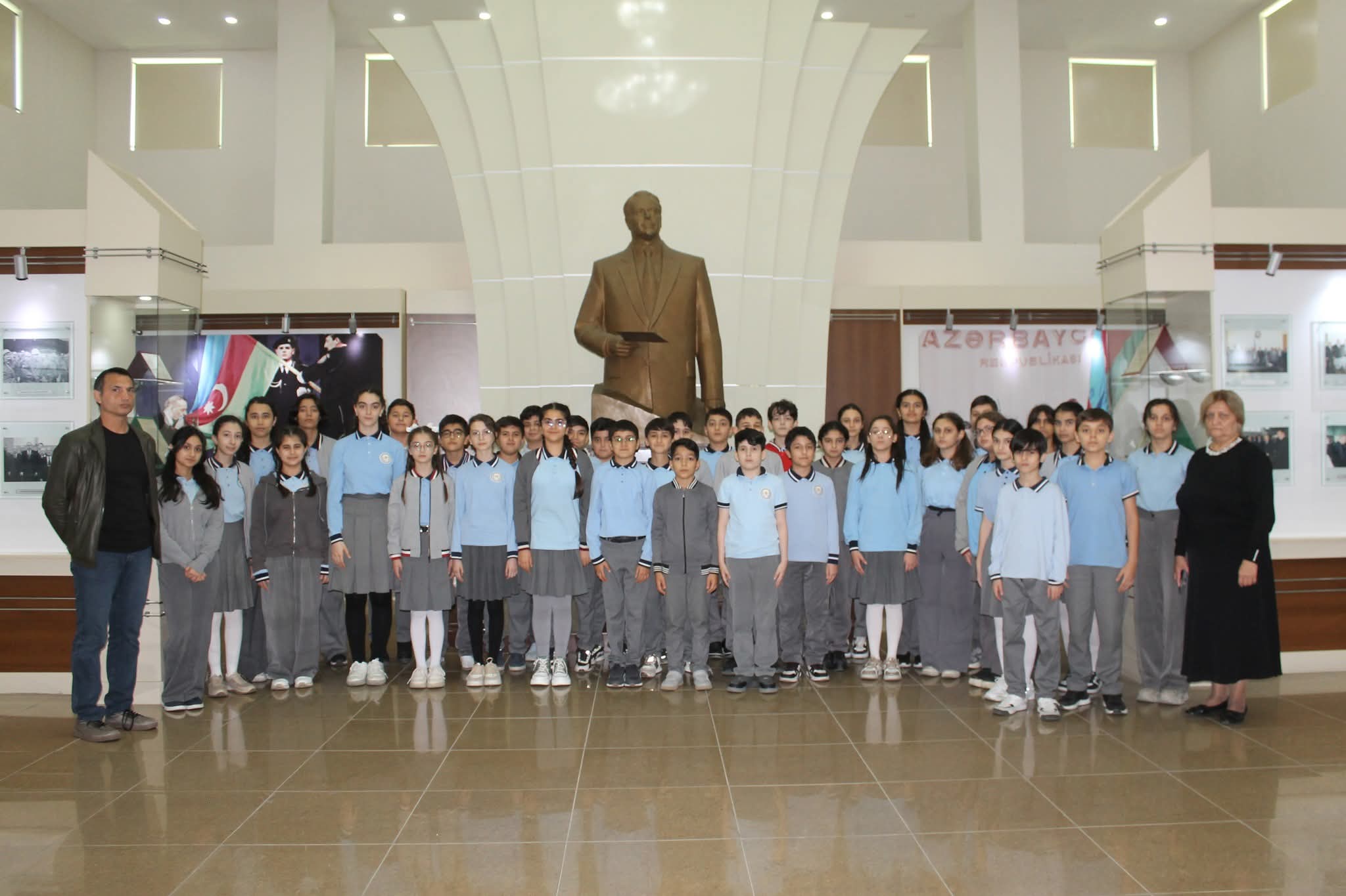 Daha sonra Heydər Əliyevin büstü ziyarət edilib və şagirdlərə Ulu Öndərin zəngin siyasi irsini əks etdirən ekspozisiya haqqında məlumat verilib.