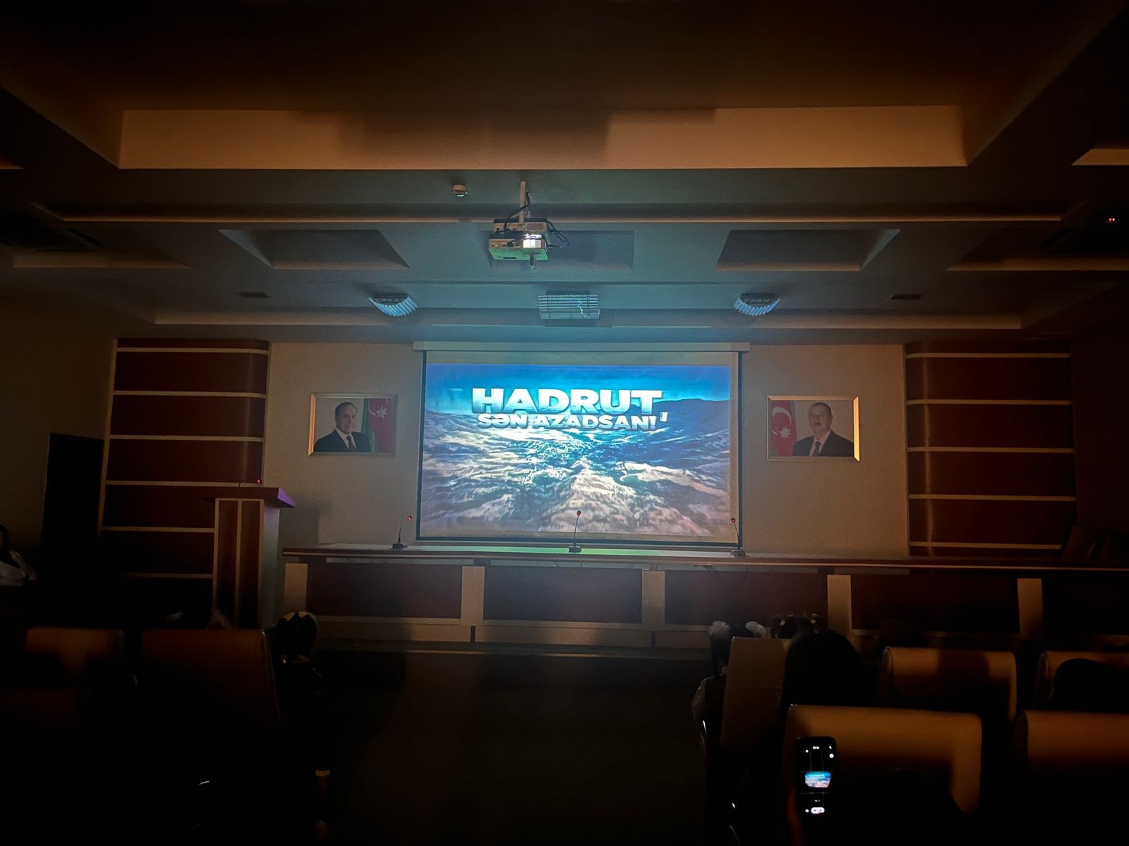 Daha sonra “Zəfər yolu” adlı mühazirə dinlənilib, əsgərlərimizin cəsarətindən və vətən sevgisindən danışılıb. Bədii hissədə şagirdlər vətənpərvərlik mövzusunda şeir kompozisiyası ilə çıxış ediblər. Tədbirdə həmçinin igid əsgərlərimizin qəhrəmanlığından bəhs edən “Hadrut, sən azadsan” filmi nümayiş olunub.